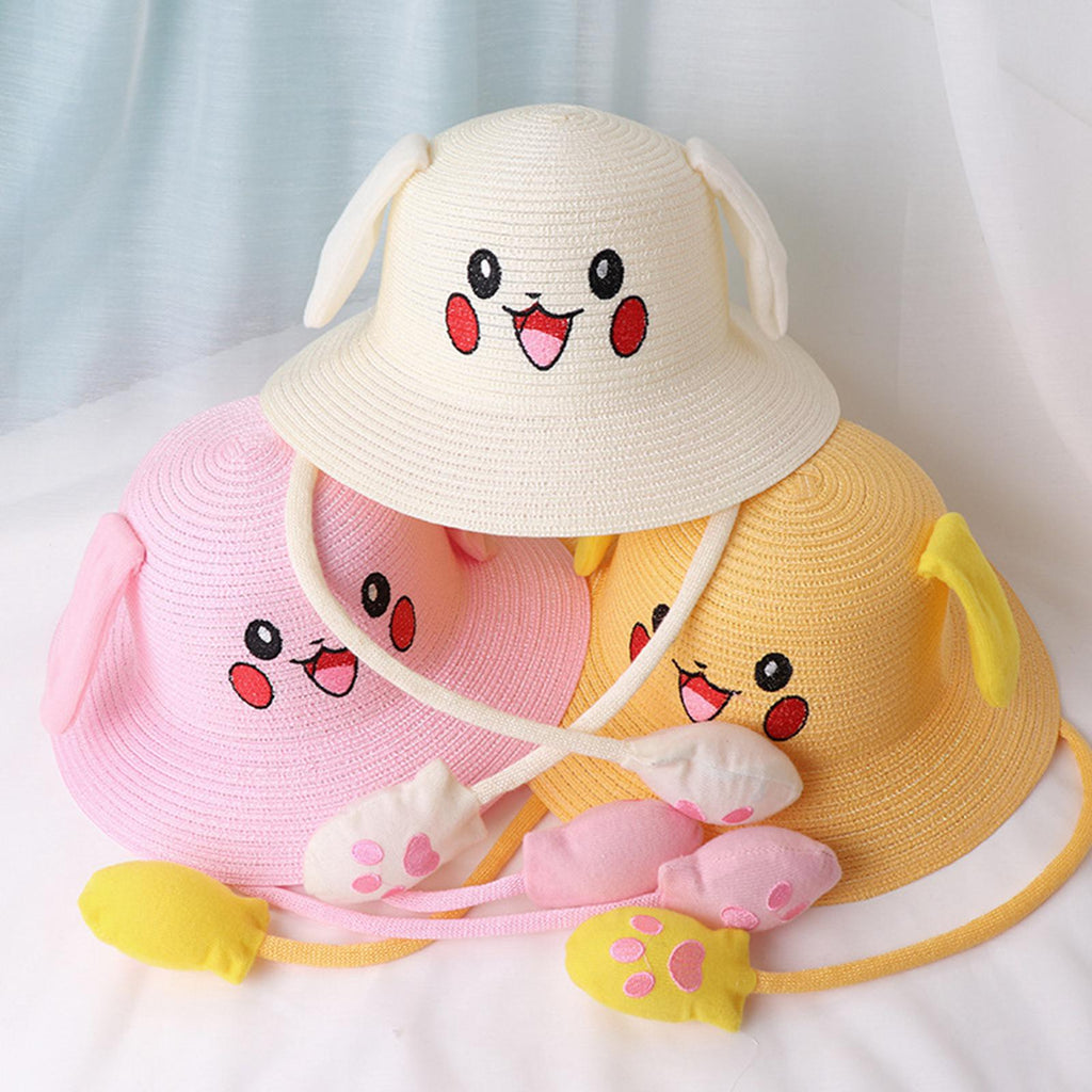 Maxbell Kids Sun Hat Cute Rabbit Hat Breathable Summer Beach Cap Children Bucket Cap Yellow