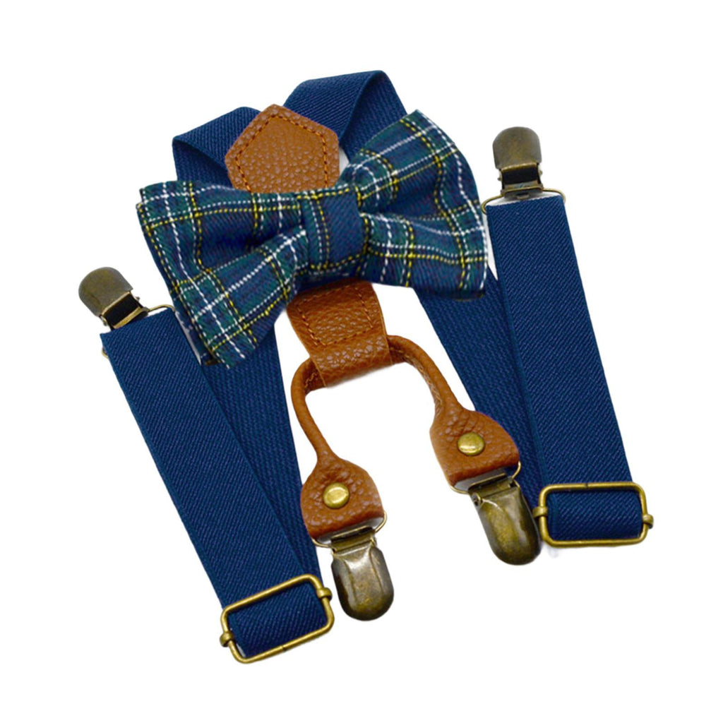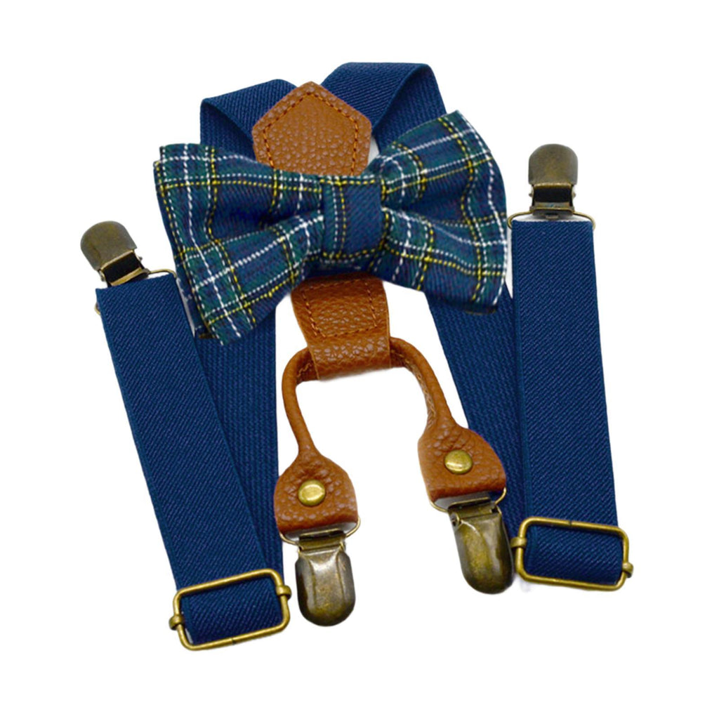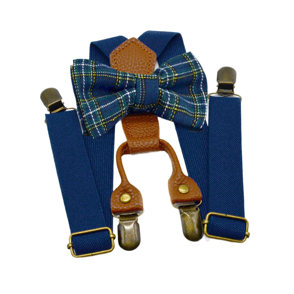Maxbell Kids Suspender and Bow Tie Tuxedo Suspender for Boys Girls Children Trousers Navy