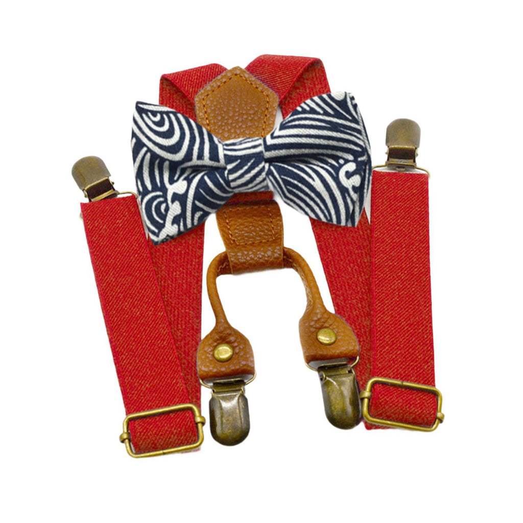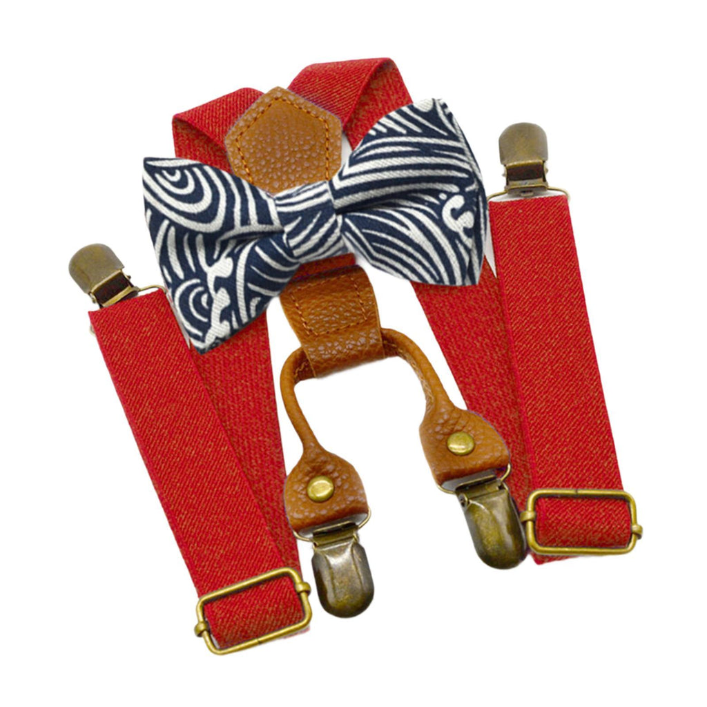 Maxbell Kids Suspender and Bow Tie Tuxedo Suspender for Boys Girls Children Trousers Red
