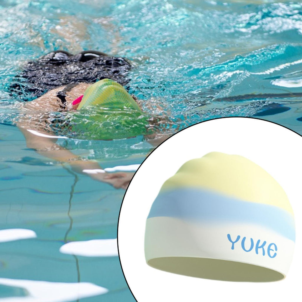 Maxbell Kids Swim Cap for Long Hair Swimming Hat for Swimming Pool Diving Snorkeling Yellow Blue