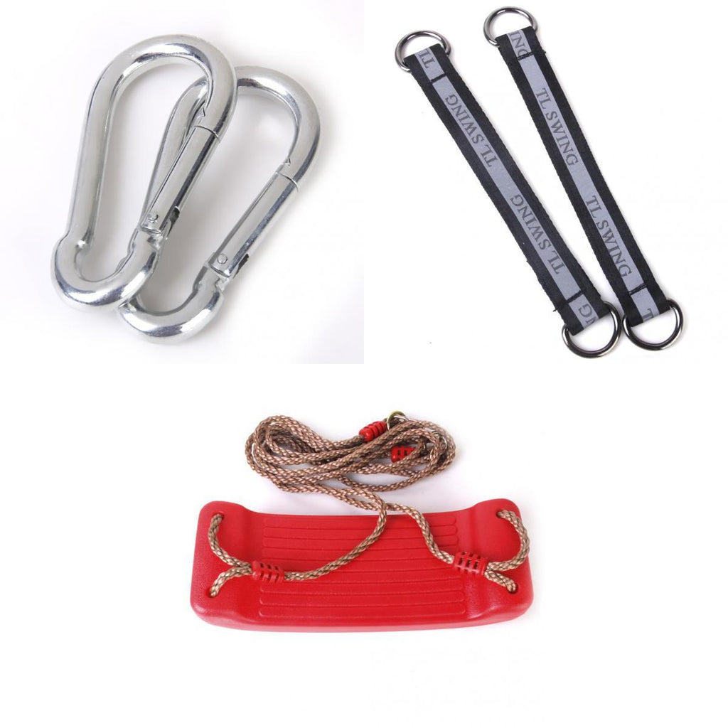Maxbell Kids Swing Set Red Plastic Tree/Beam Swing Seat w.Rope+Hanging Strap+Snap Hook