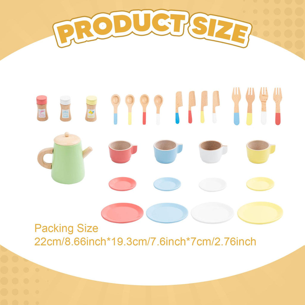 【Design】: Featuring a delightful color and fine craftsmanship, this Wooden Tea Party Set captivates children’s attention, making play more enjoyable with its variety of tea accessories