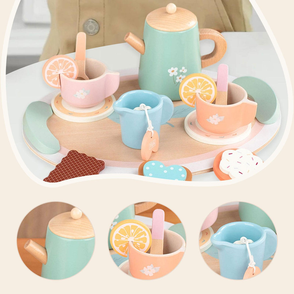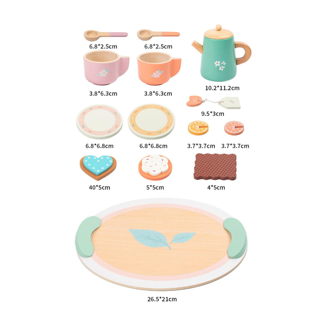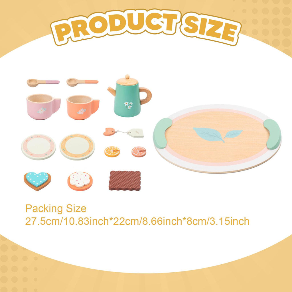 【Design】: Featuring a delightful color and fine craftsmanship, this Wooden Tea Party Set captivates children’s attention, making play more enjoyable with its variety of tea accessories
