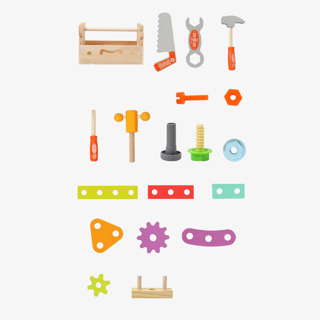 【Portable】: The carry on design of the toolbox toy makes it easy to store and organize, and the handle makes it the toy to take with you.