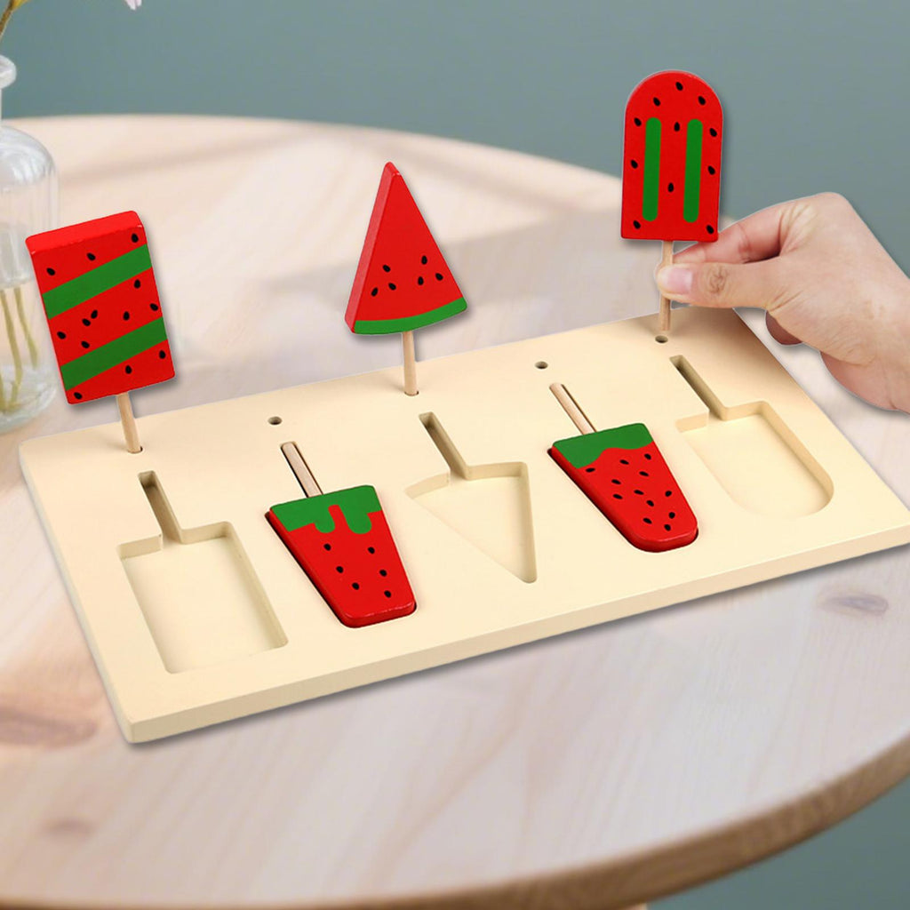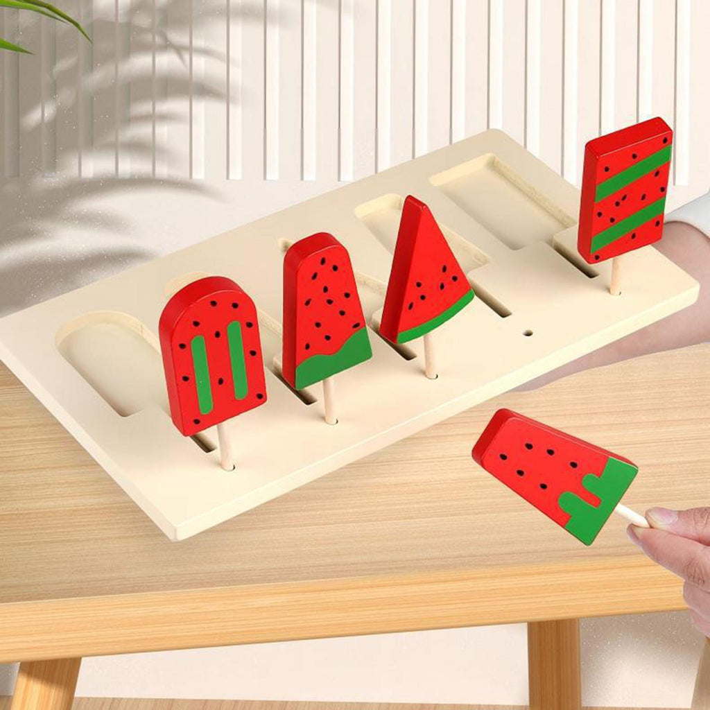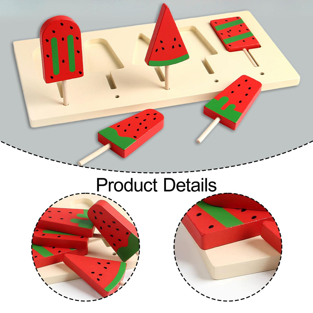 【Premium Material】: The watermelon ice lolly set is made of wood material, has a smooth surface without burrs, will not scratch children's hands, and ensures a long time to use