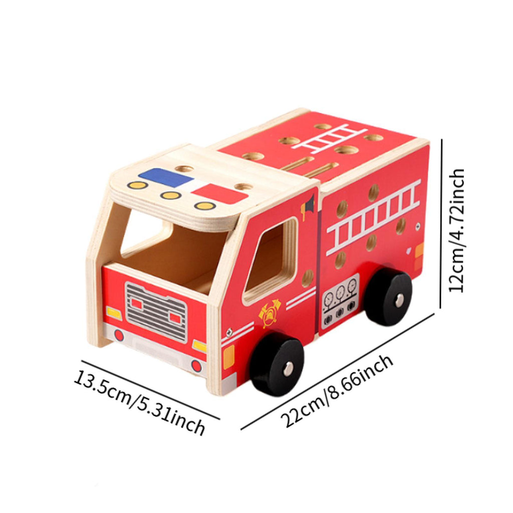 【Multifunctional Wooden Truck Tool Box】: This truck toolbox combines a toy truck with creative play, featuring exterior holes for kids to construction design. The wooden toy box serves as a play table, storage, and carry case. It offers fun for your builder