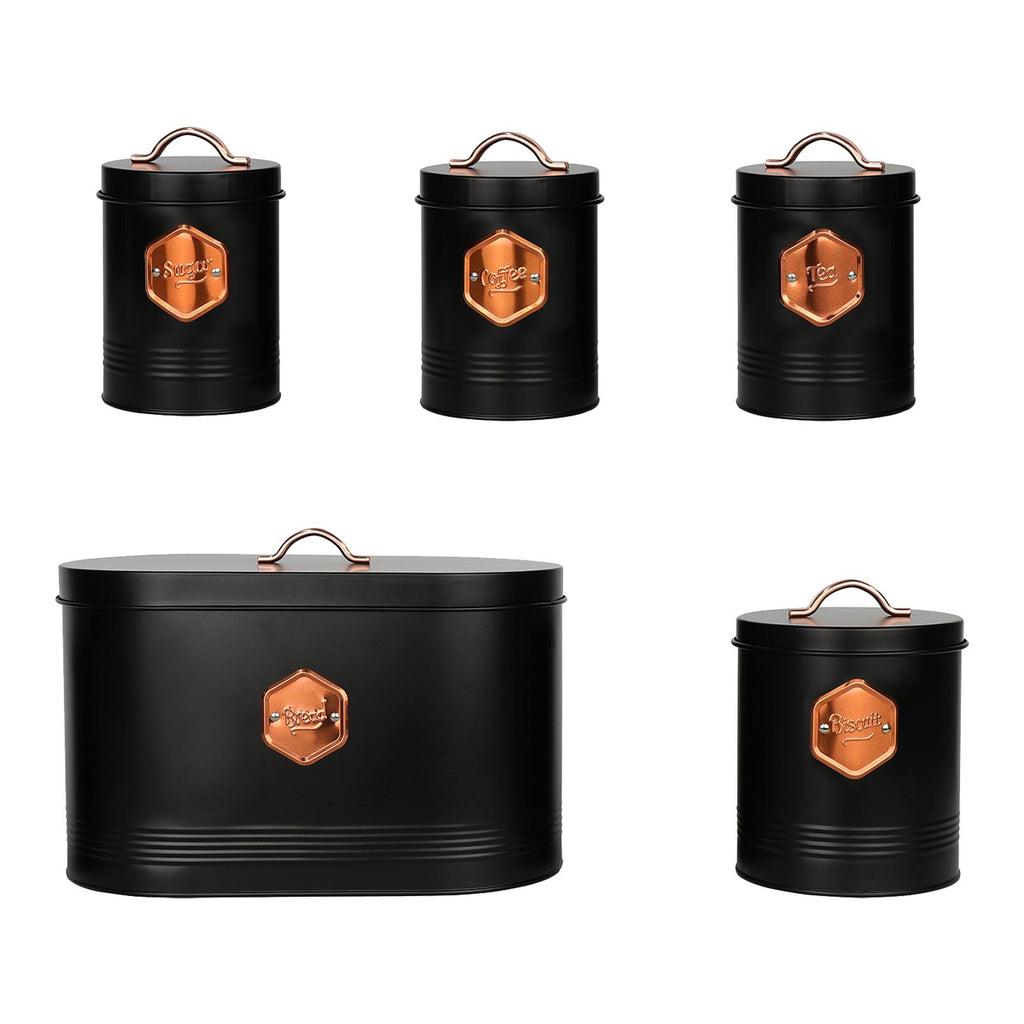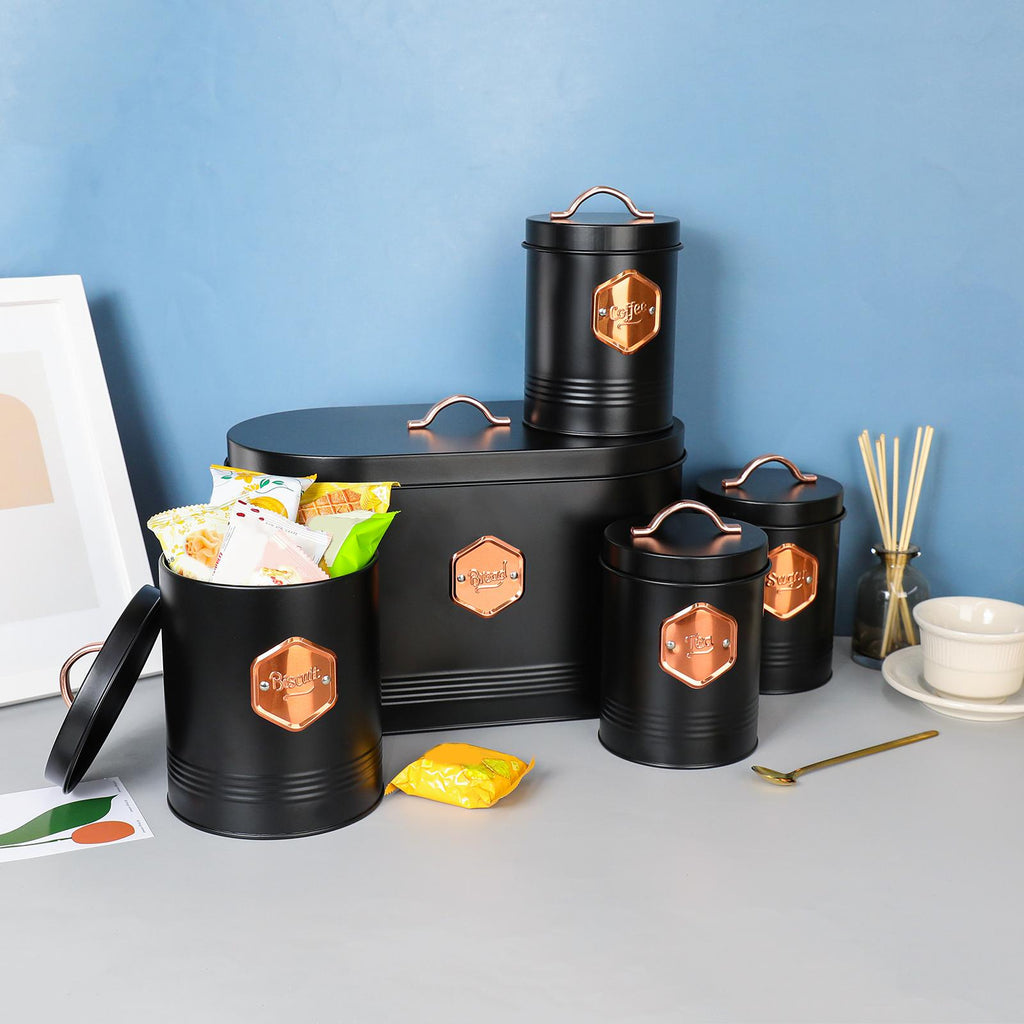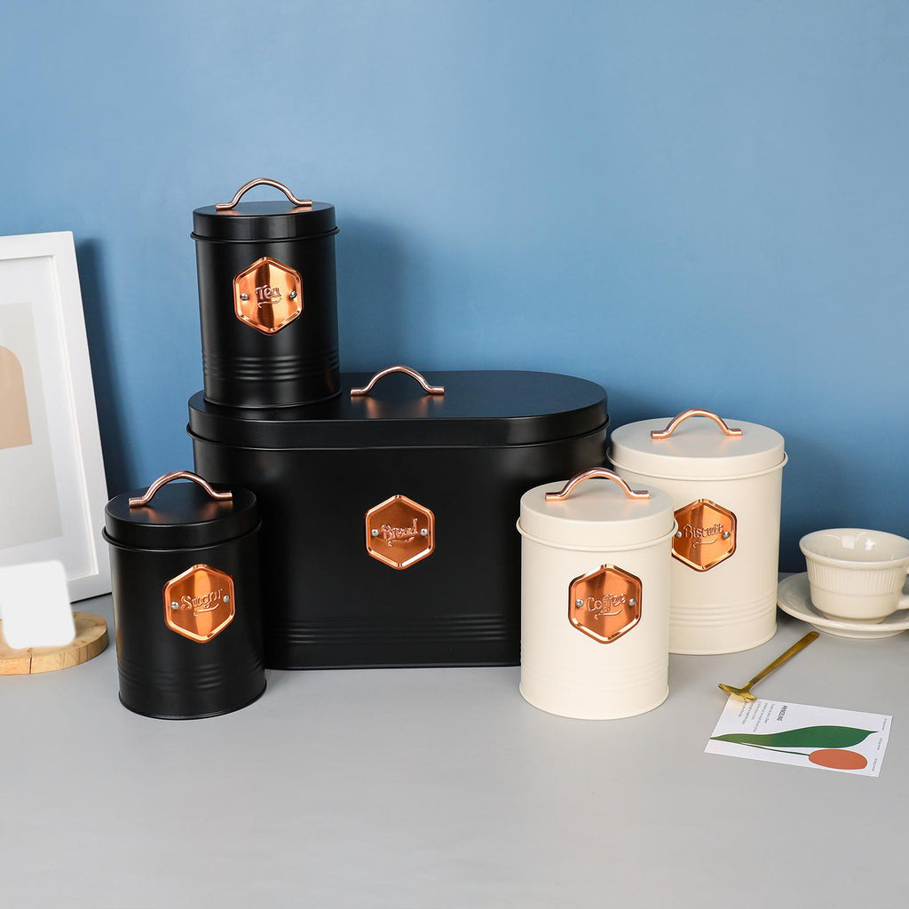 【With Lids Cover】: Bread Box and food jars of sugar, tea, coffee, biscuit are designed with lids cover which provide a seal, ideal for storing foods, keeping a long time and fresh.