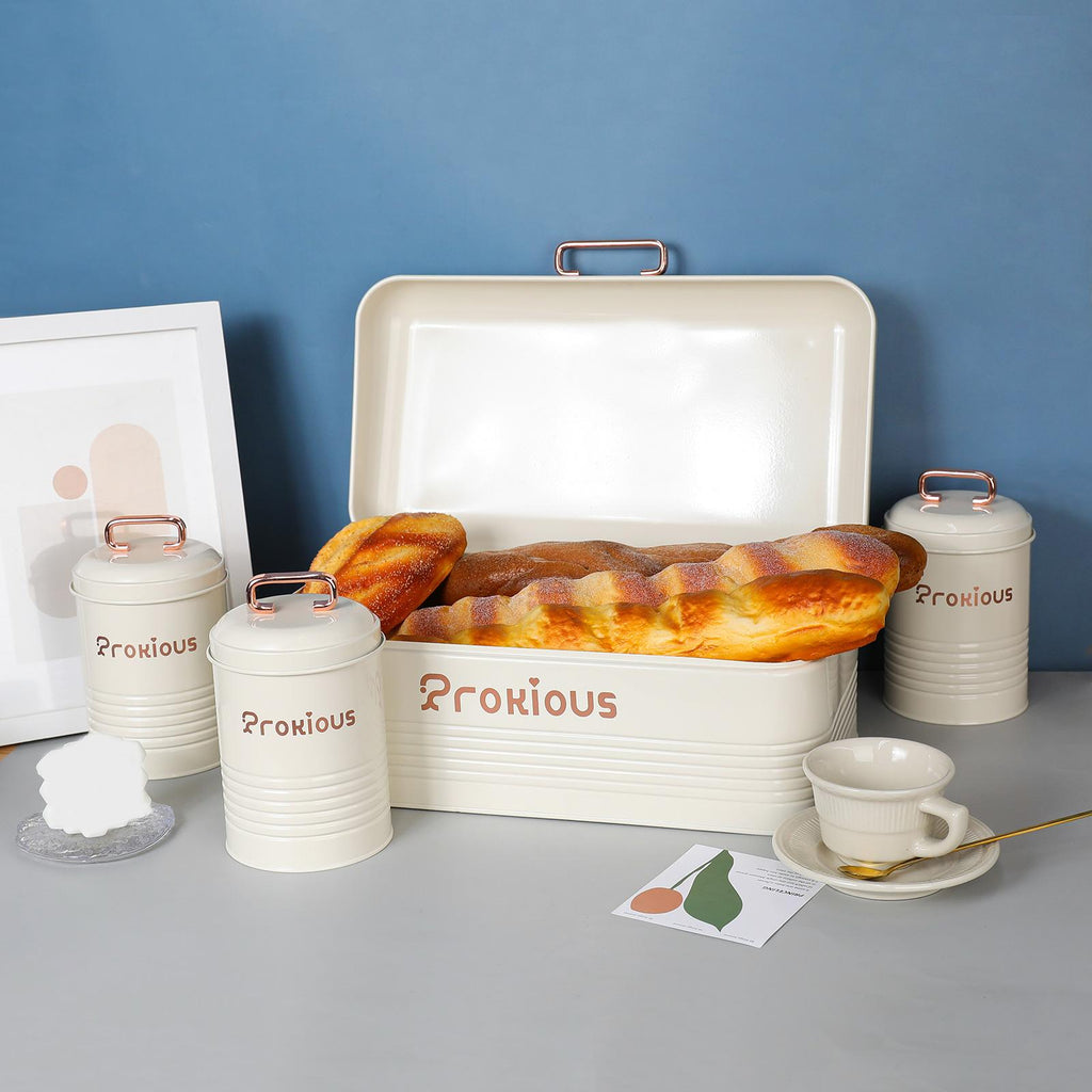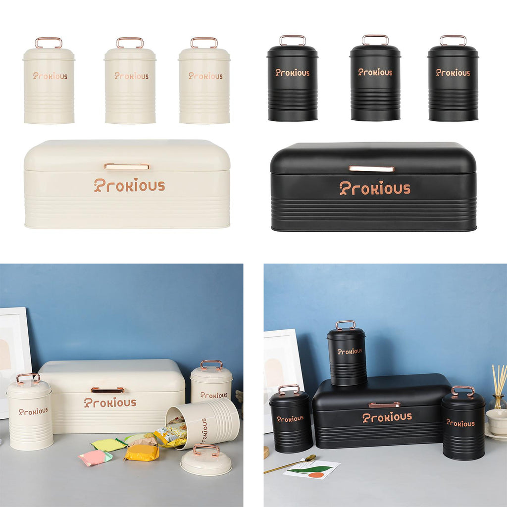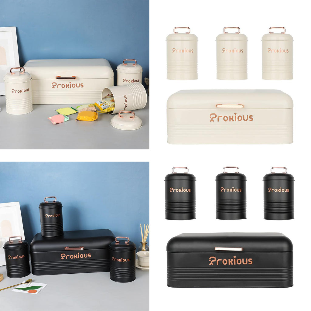 【With Lids Cover】: Bread Box and food jars of sugar, tea, coffee are designed with lids cover which provide a seal, ideal for storing foods, keeping a long time and fresh.
