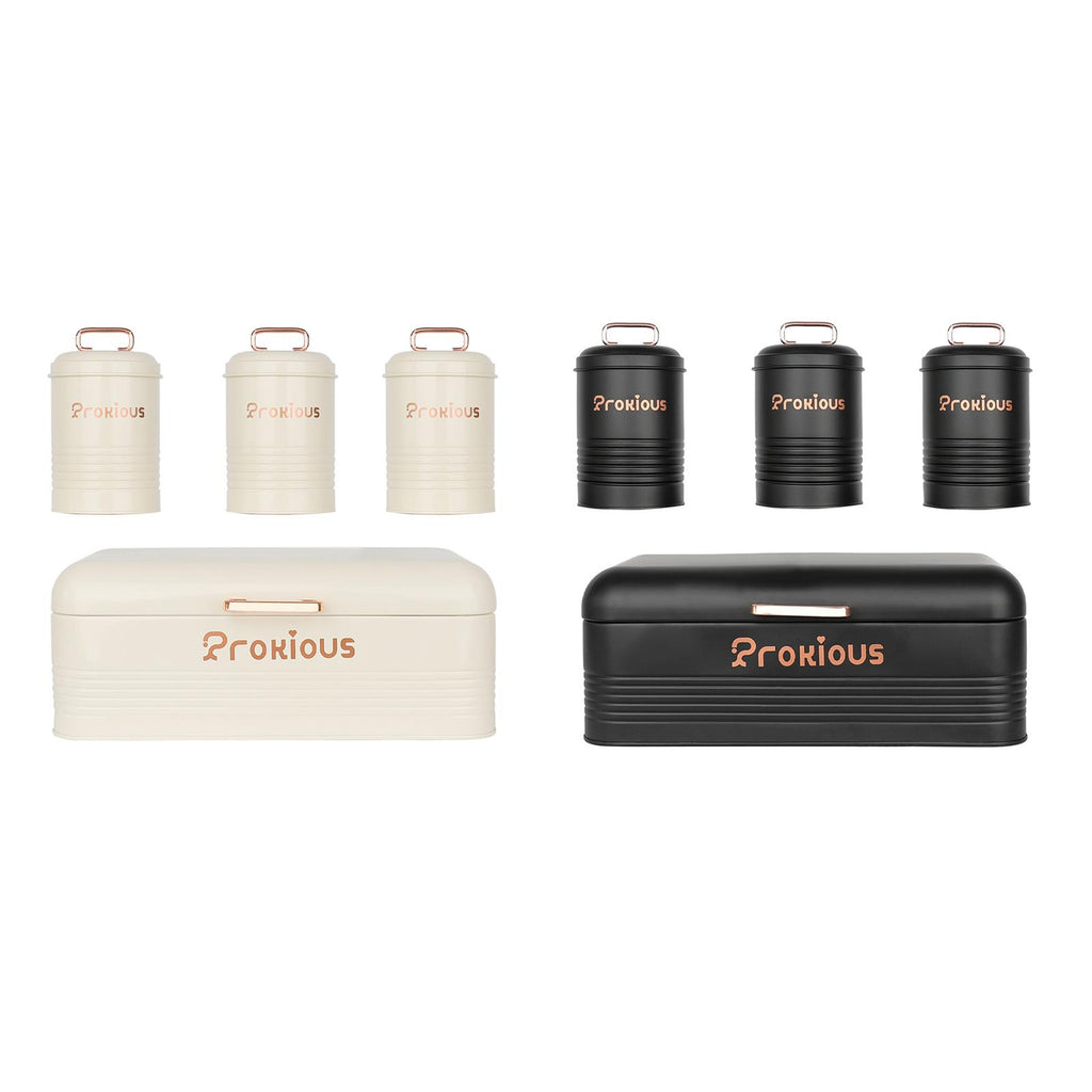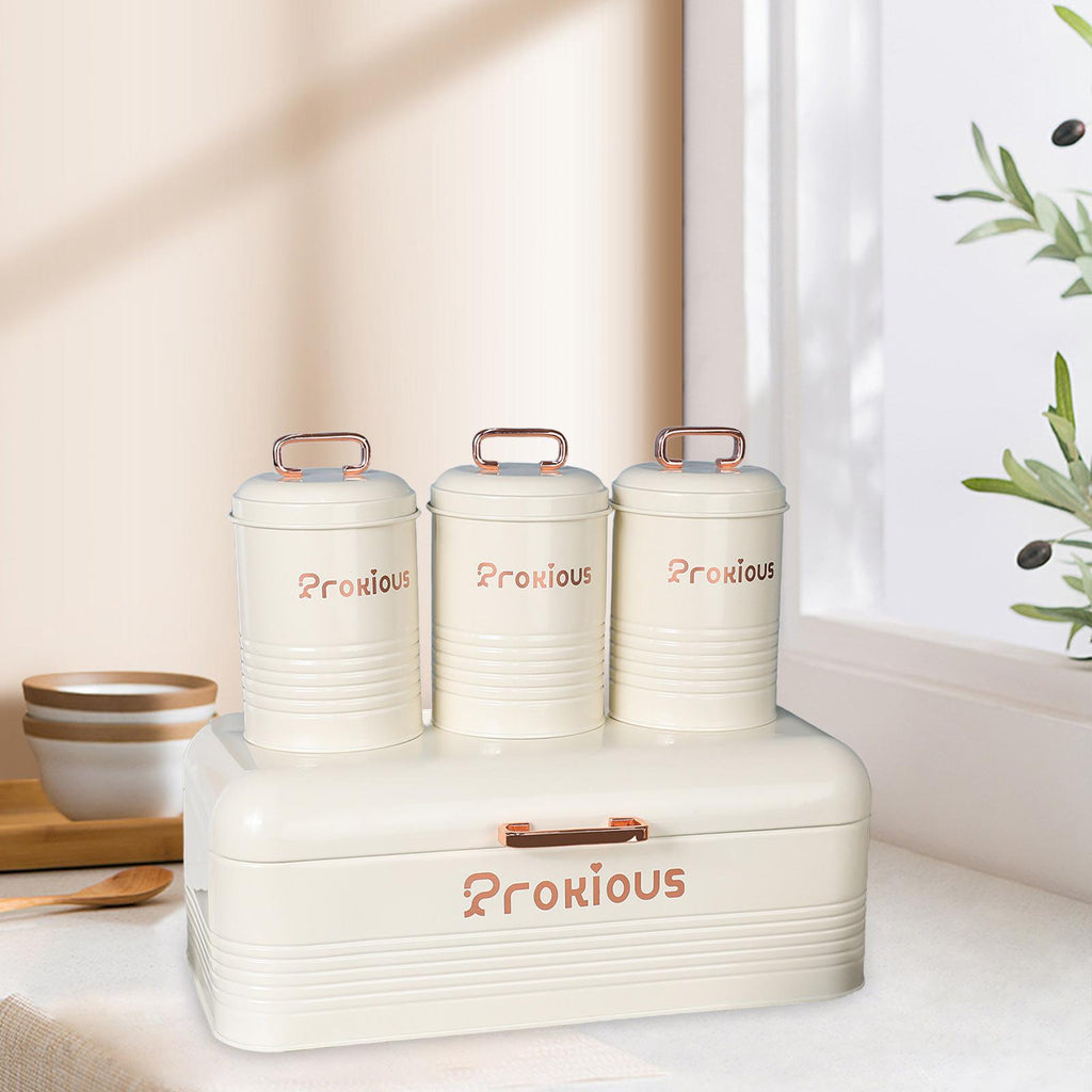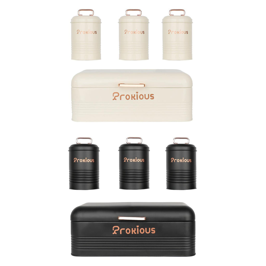 【With Lids Cover】: Bread Box and food jars of sugar, tea, coffee are designed with lids cover which provide a seal, ideal for storing foods, keeping a long time and fresh.