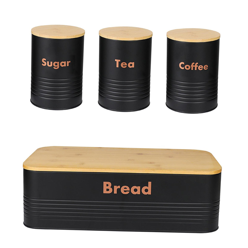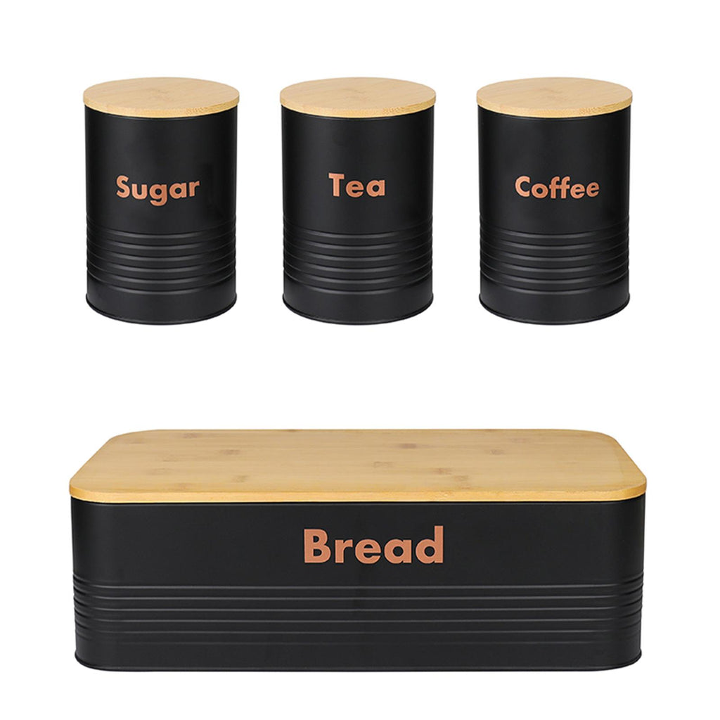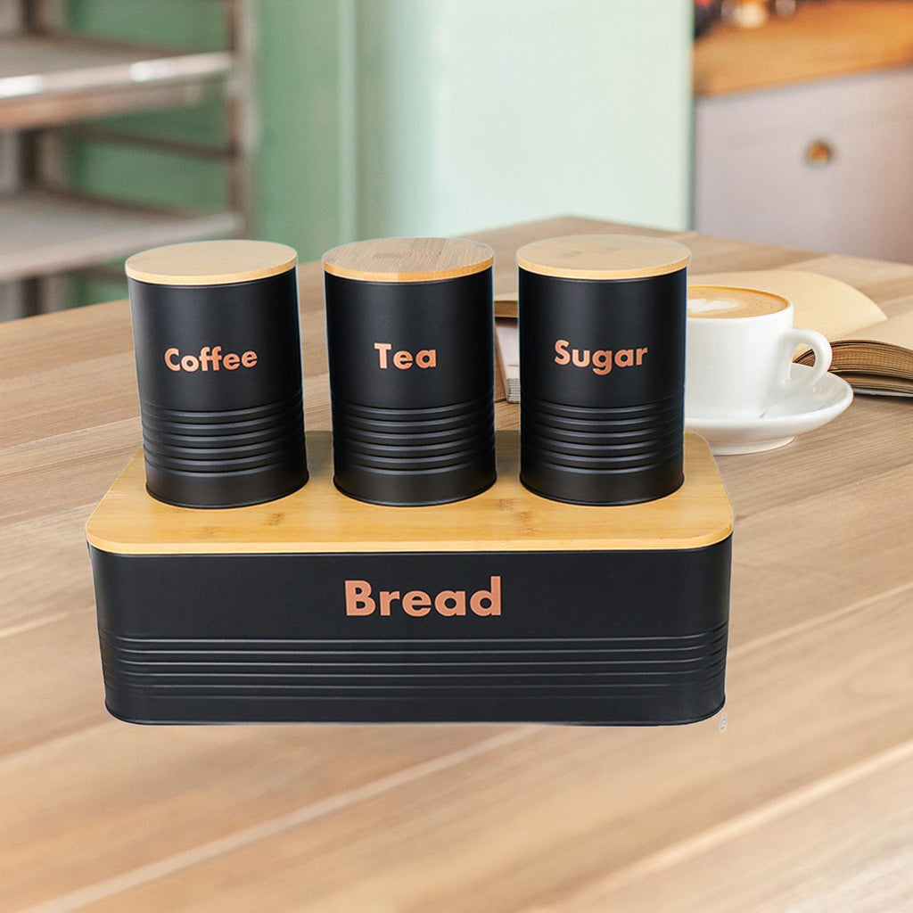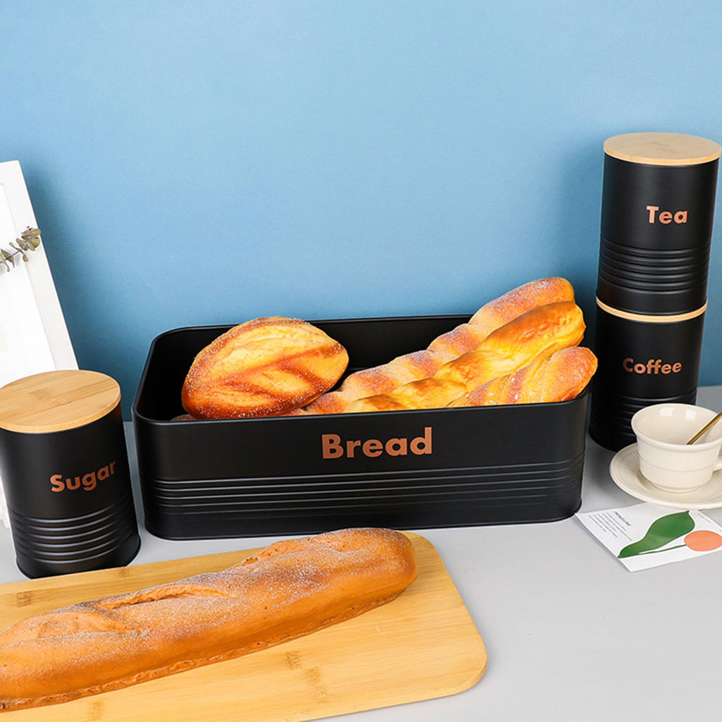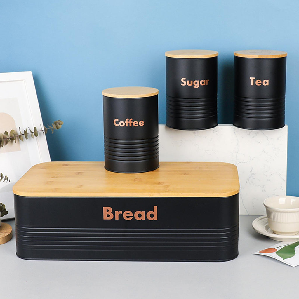 【With Lids Cover】Bread Box and food jars of sugar, tea, coffee are designed with lids cover which provide a seal, ideal for storing foods, keeping a long time and fresh.