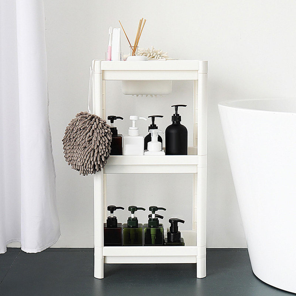 【Durable Material】: The bathroom storage shelf is made of strong and durable material, great for storing various items in an organized manner, such as toiletries, essentials, etc.