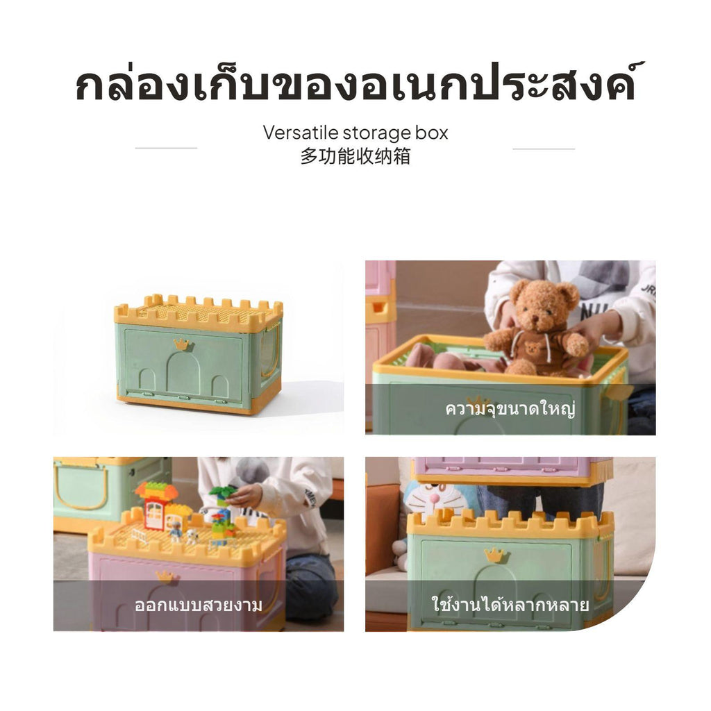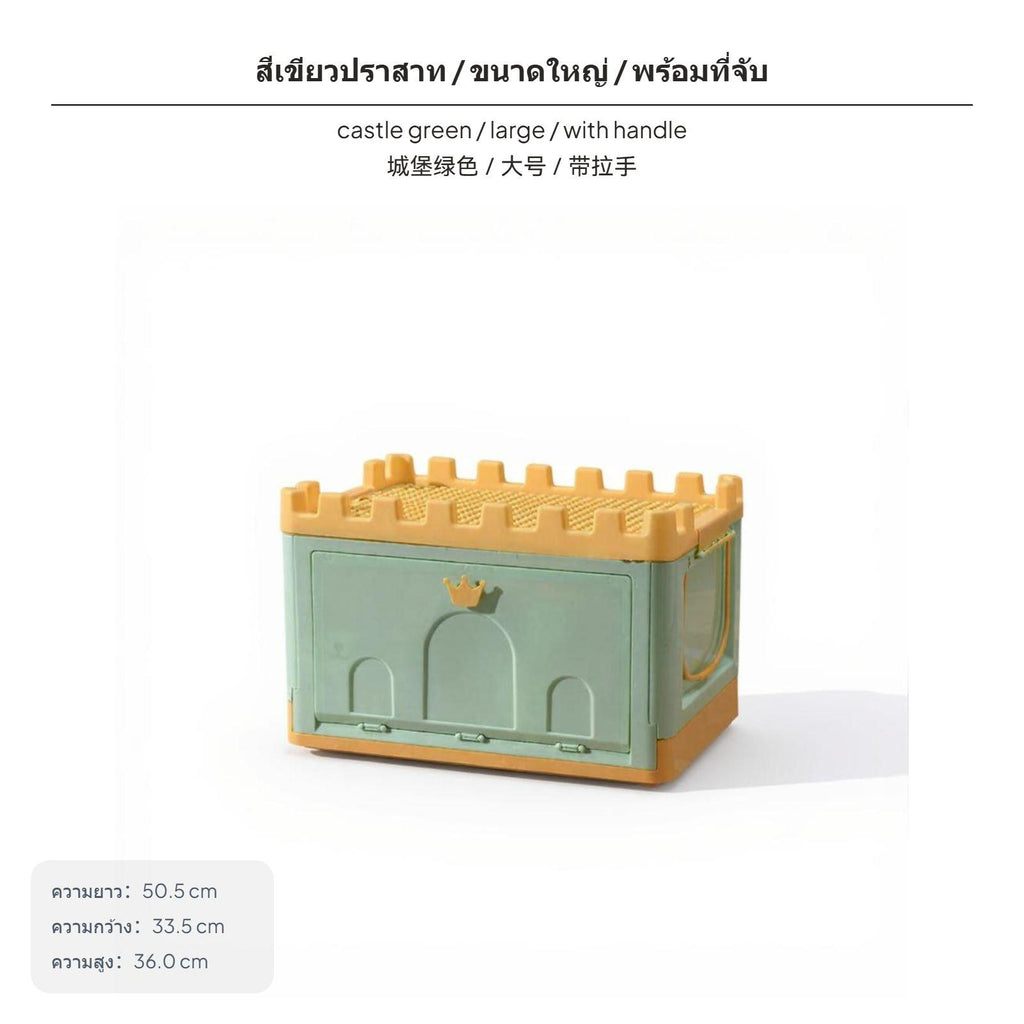 Large Capacity Children's Toy Storage Box, Side Door, Stackable, Foldable Castle Green