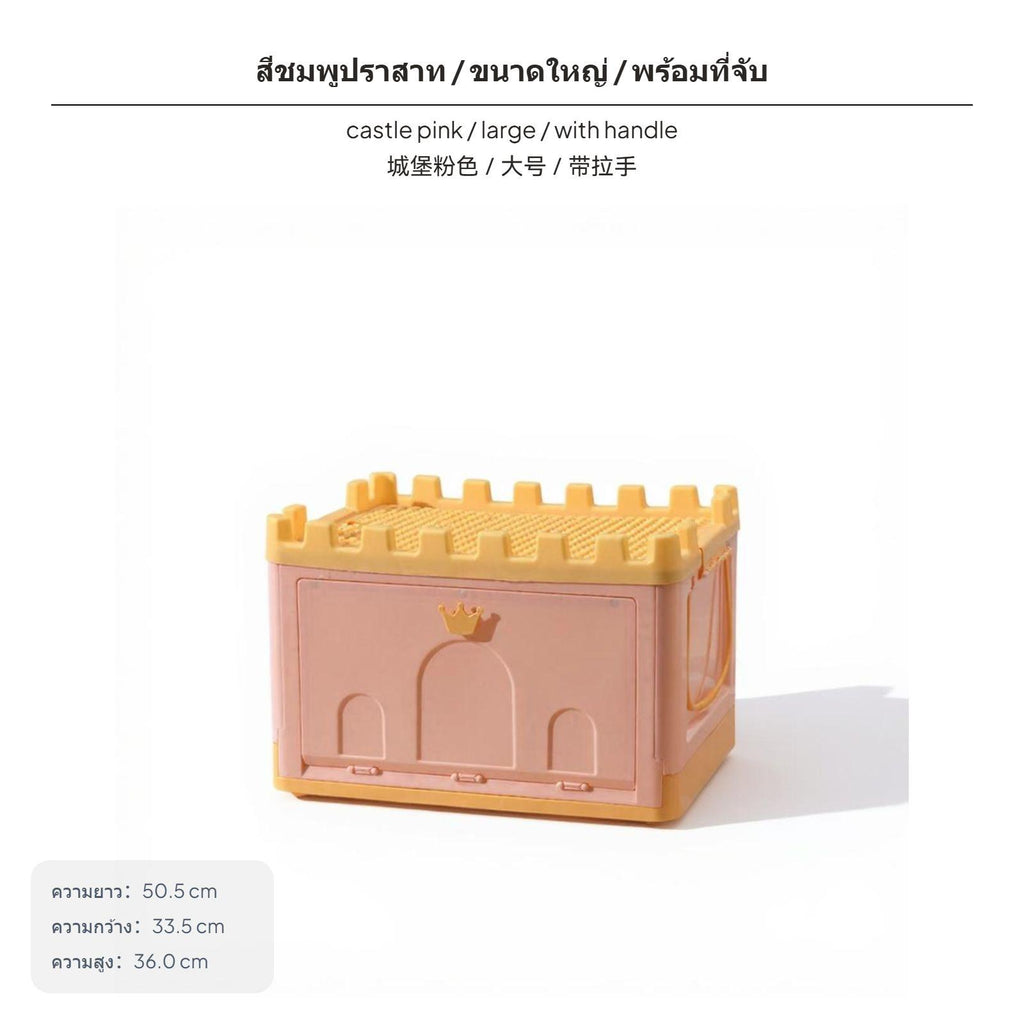 Large Capacity Children's Toy Storage Box, Side Door, Stackable, Foldable Castle Pink