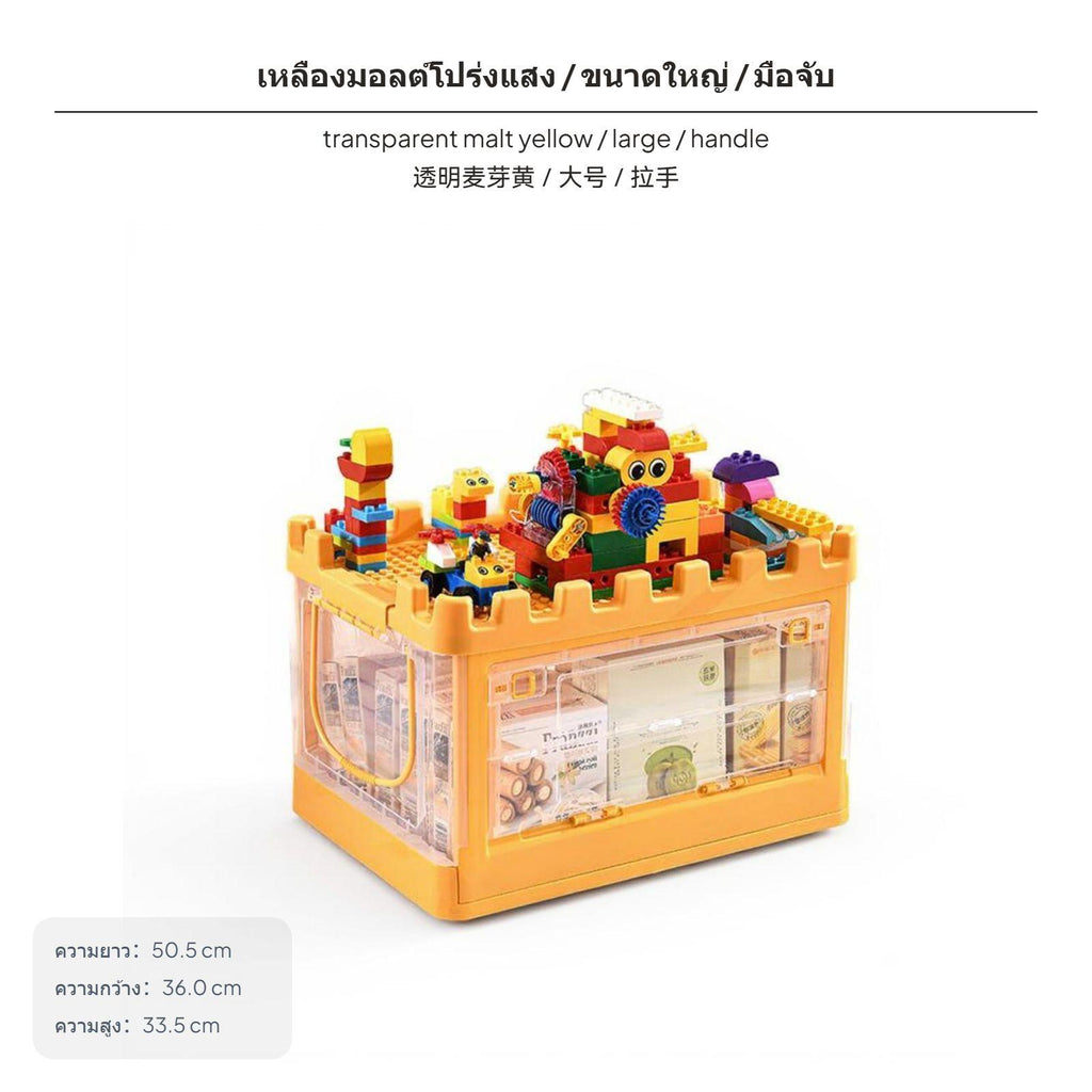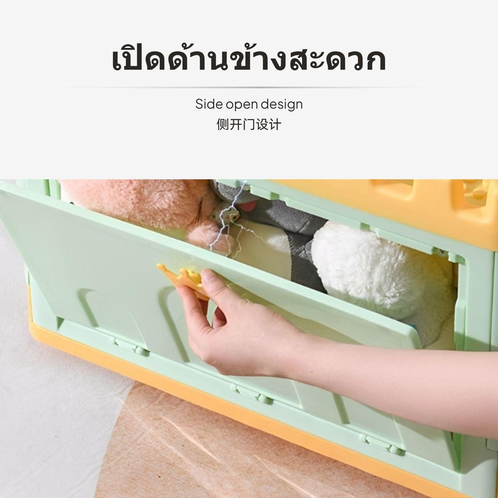 Large Capacity Children's Toy Storage Box, Side Door, Stackable, Foldable Transparent Yellow