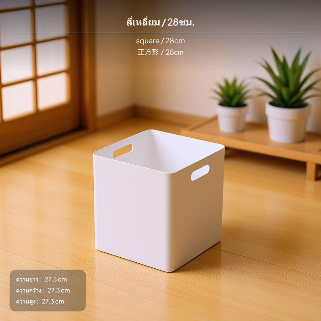 [High-Quality Material] Crafted from premium thermoplastic material, this square storage box ensures enduring use with a polished surface that is easy to clean, making it practical for any home organization.[adaptable Design choices] Available in 28CM, 30CM, and 33CM sizes, with features like convenient handles and optional lids. Perfect for organizing toys, books, clothes, and assorted items in all spaces.[Efficient Storage Solution] With a spacious interior and minimalist design, this box declutters your living room, bedroom, study, or kids' room, providing a neat environment and improved living quality.[Stackable & Portable] Optional lids allow stable layering for upright space optimization. Detachable casters are available for easy movement, perfect especially for bulky loads or frequently moved items.[Elegant & Functional] The spotless ivory appearance and clean lines enhance modern home aesthetics. Designed with thoughtful features like ergonomic handles for ease of use in any scenario.Specification: