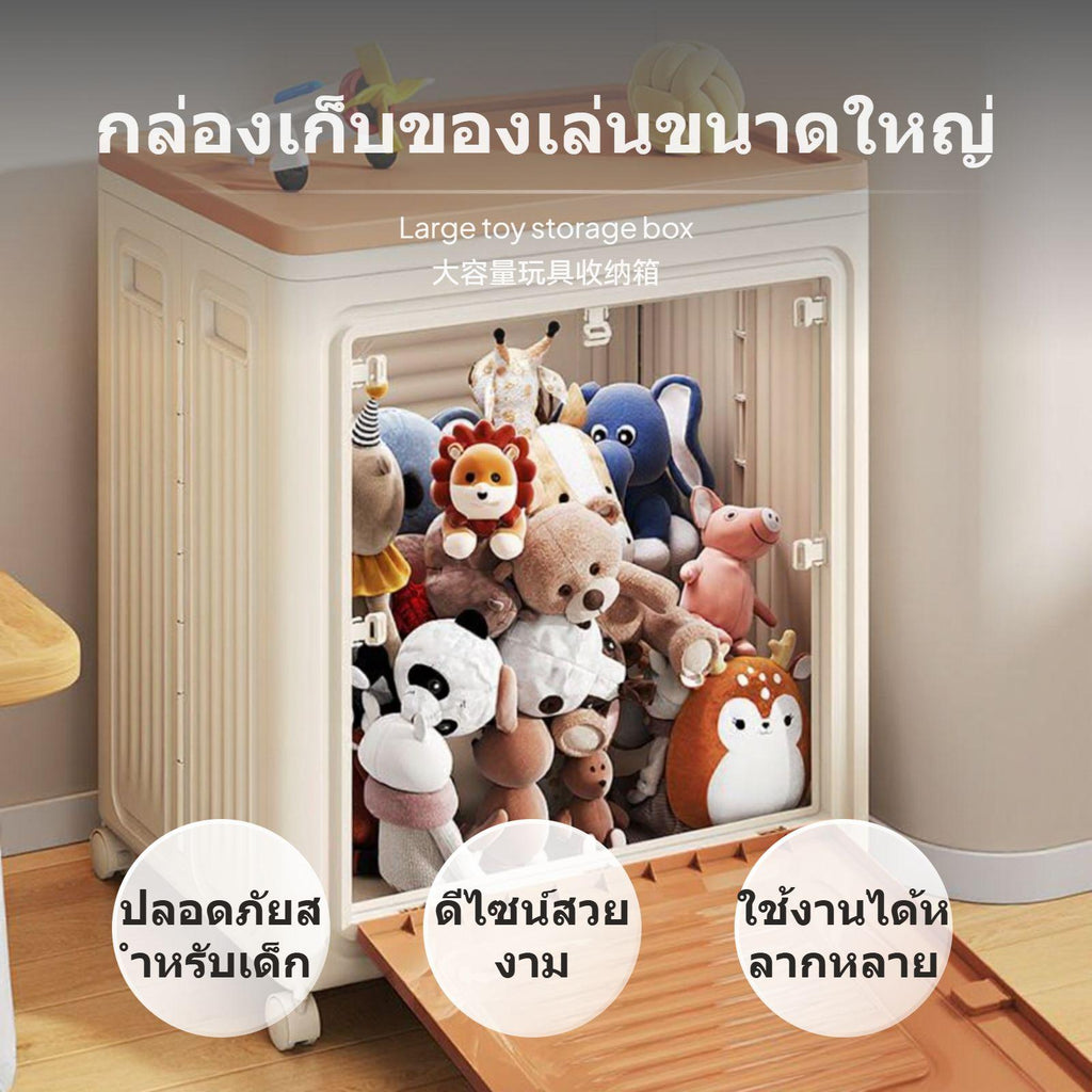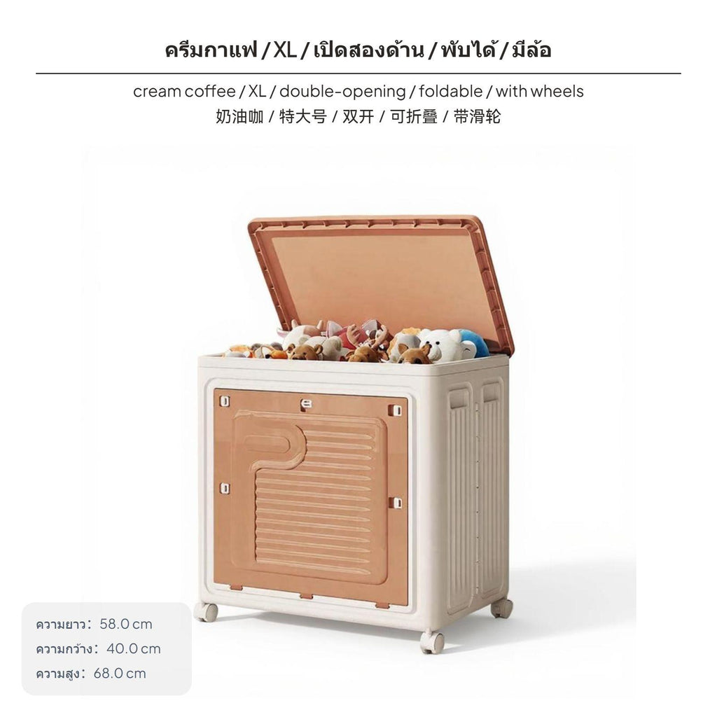 Large Toy Storage Box with Lid, Foldable Organizer with casters, Cream design, 123L-280L Cream Coffee XL