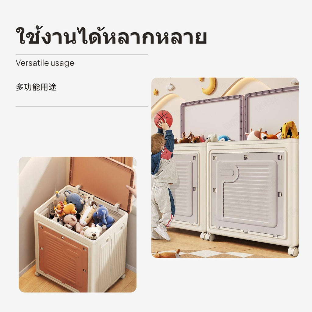 Large Toy Storage Box with Lid, Foldable Organizer with casters, Cream design, 123L-280L Cream Orange 280L