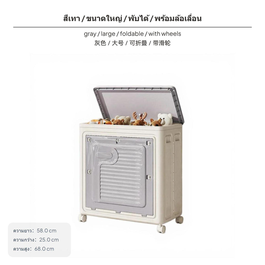 Large Toy Storage Box with Lid, Foldable Organizer with casters, Cream design, 123L-280L Gray L