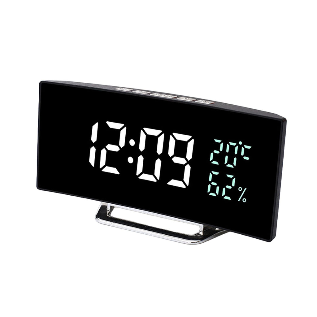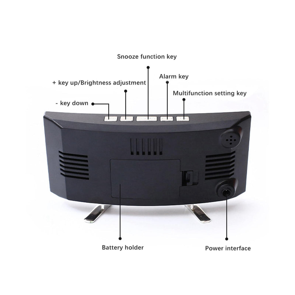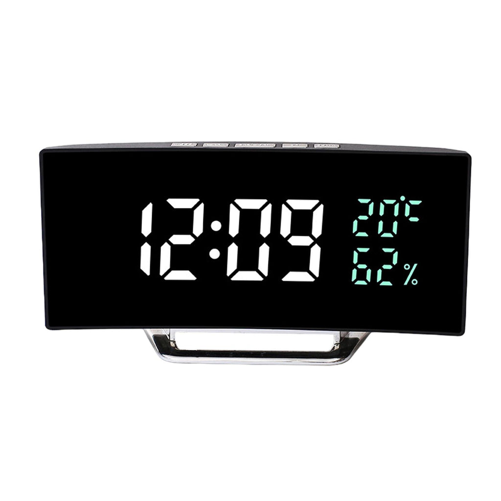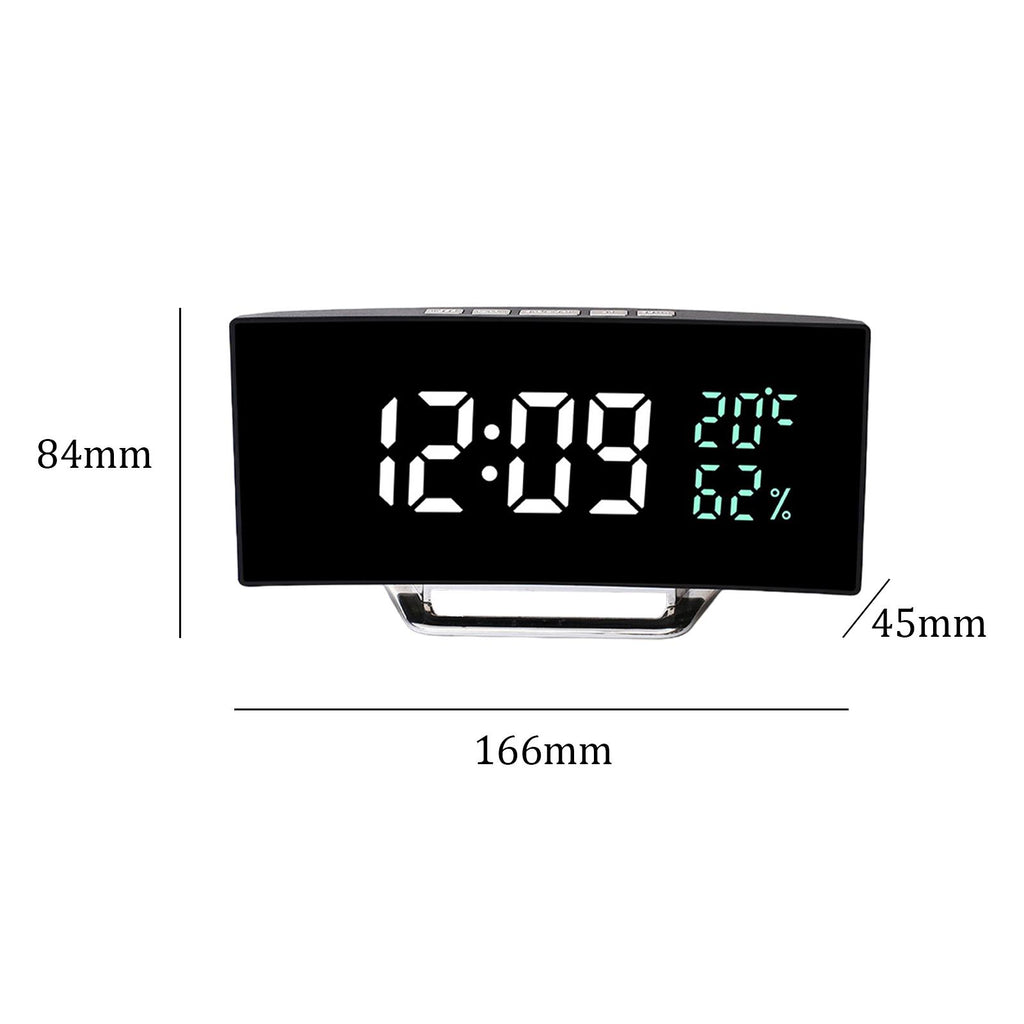 【Digital Display】: 12/24H LED digital alarm clock with a curved screen, very easy and clear to read time, sleek and elegant appearance for decoration.