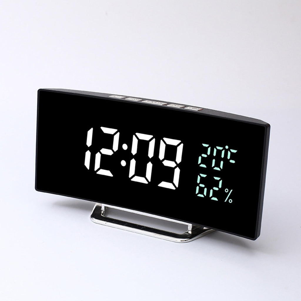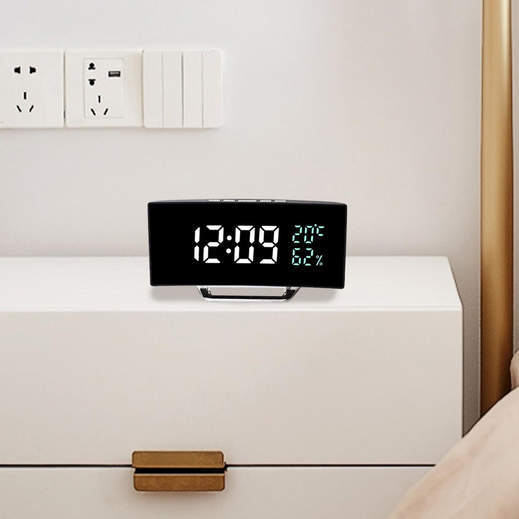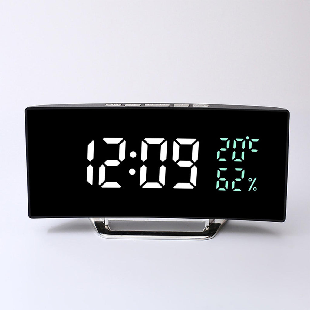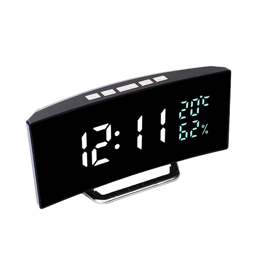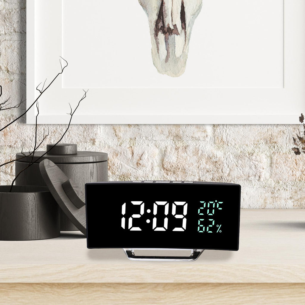 【Digital Display】: 12/24H LED digital alarm clock with a curved screen, very easy and clear to read time, sleek and elegant appearance for decoration.
