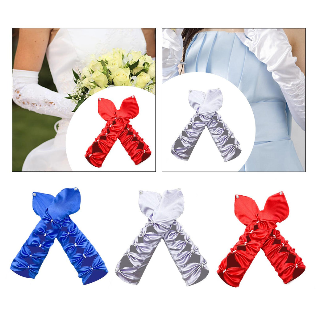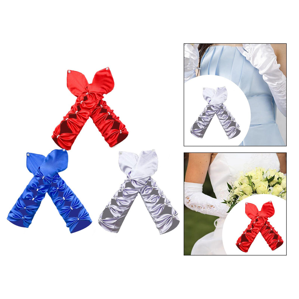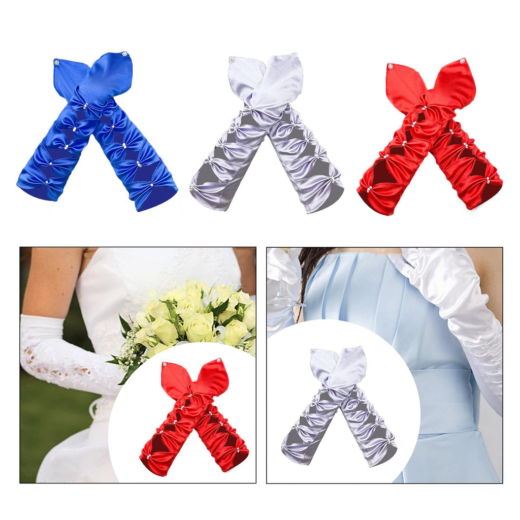 【Exquisite Design】: Satin Gloves are in fingerless design, elegant long elastic satin pleated bowknot wedding bridal gloves, looking more charming and gorgeous with dress.