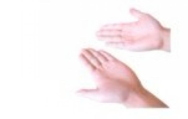 Step Four: cover the coin with your right palm gently and open your index finger and middle finger at the same time. Then the coin will automatically to the disappear device on your wais