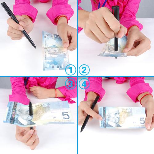 Keywords: trick, penetration pen, pen thru bill