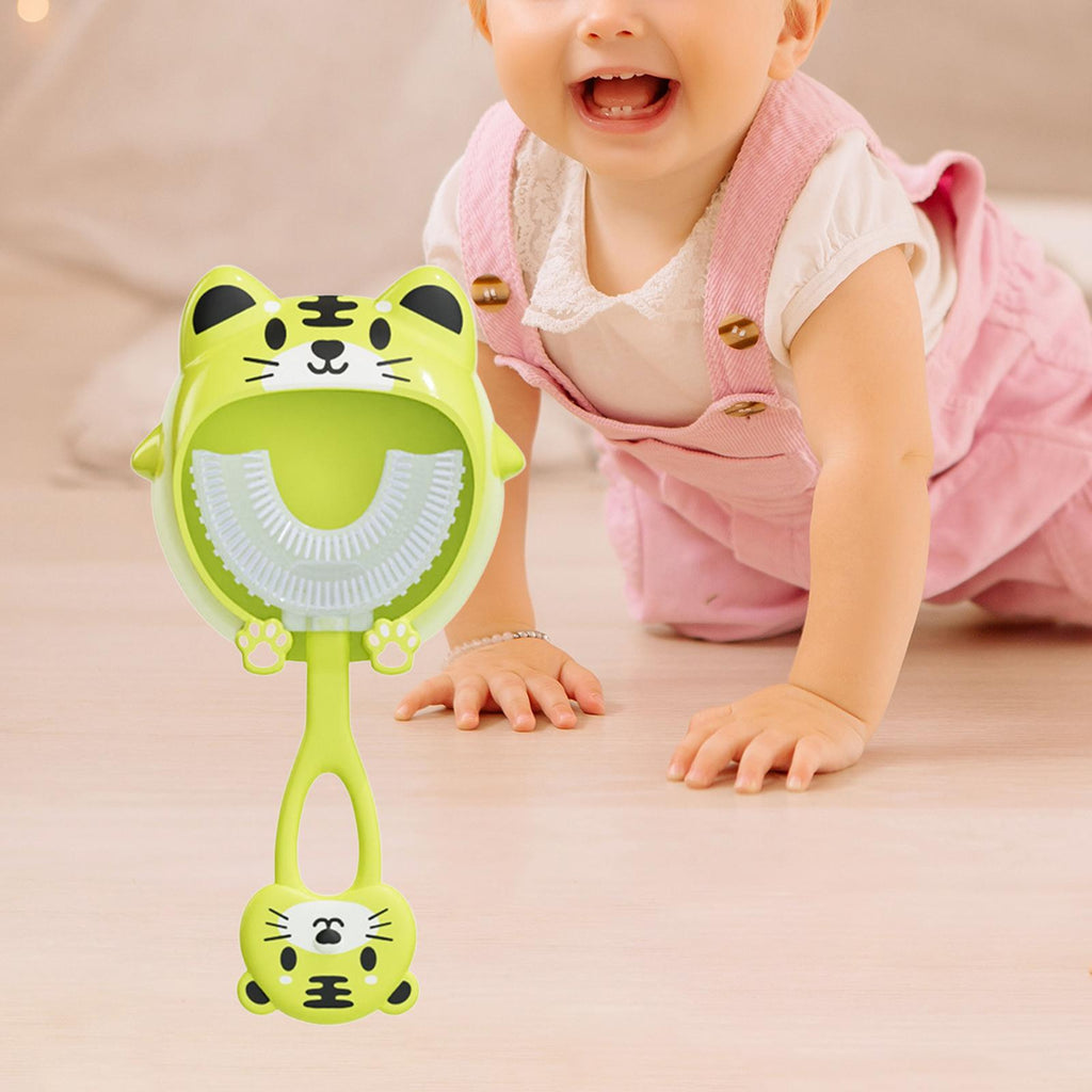 【U Shape Tooth Brush】 This toddlers toothbrush especially designed for kids's tender and sensitive .The brush head is made of quality transparent food grade soft silicone, which can perfectly achieve three sided fitting of and gums to effectively clean 360 degrees.