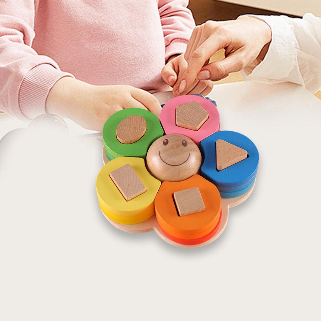 Maxbell Matching Puzzle Stacker Wood Shape Stacking Toy for Boy Girls Birthday Gifts style A