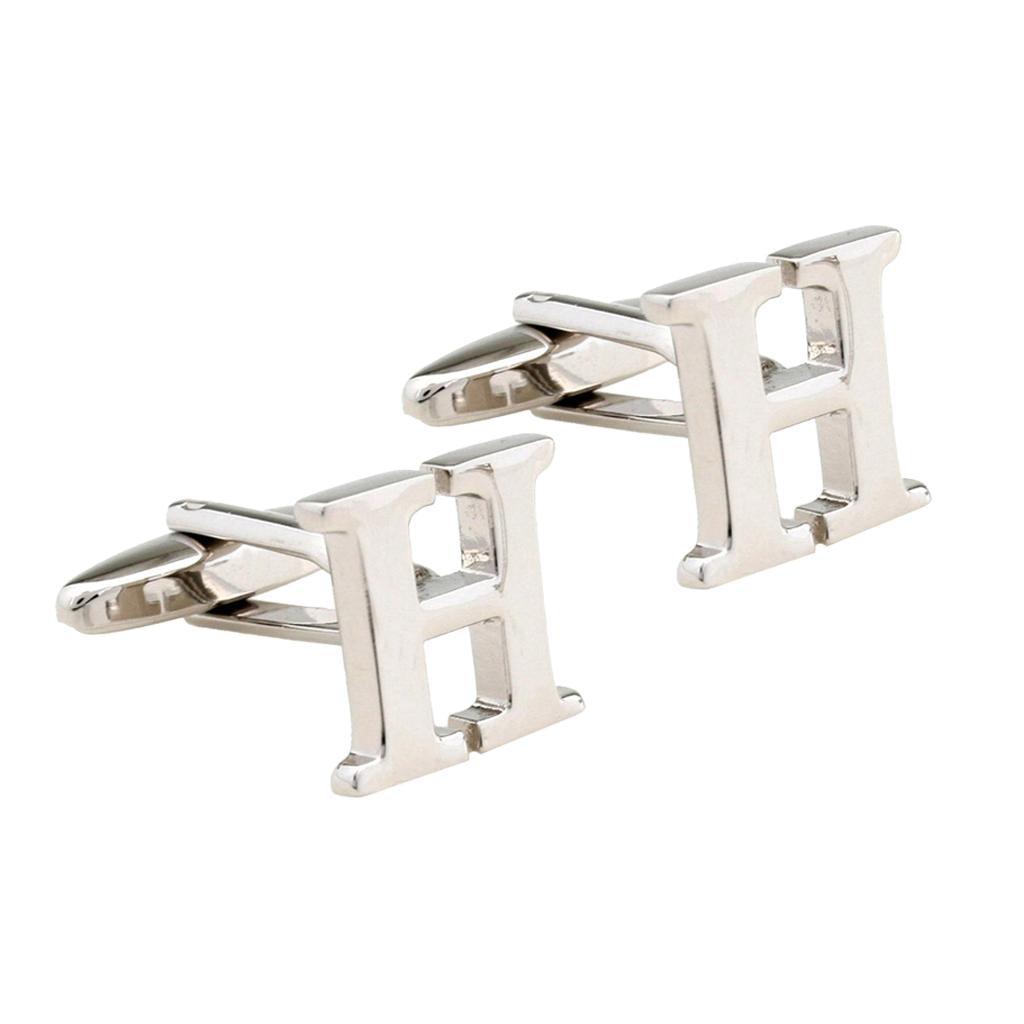 Maxbell Mens Brass Initial Cufflinks Letter Business Shirt Cuff Links Wedding Gift H