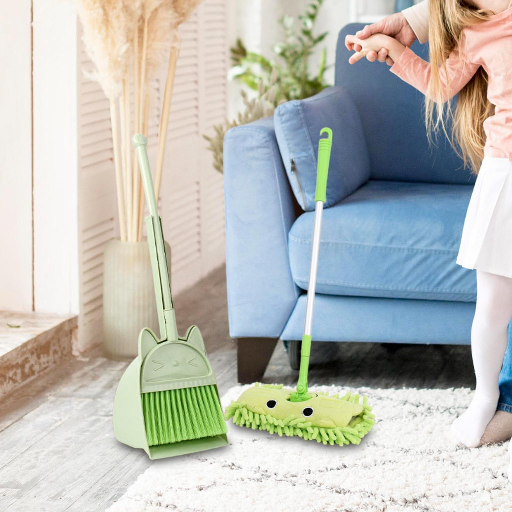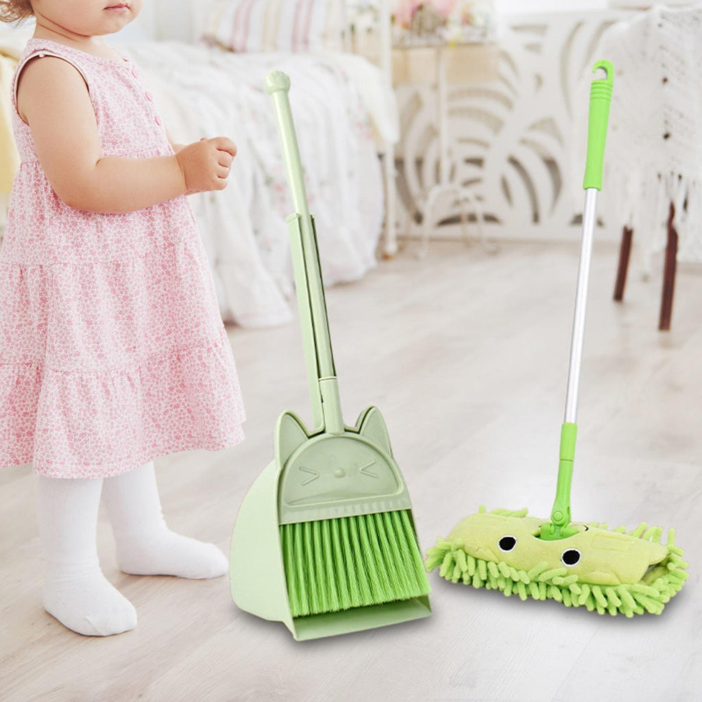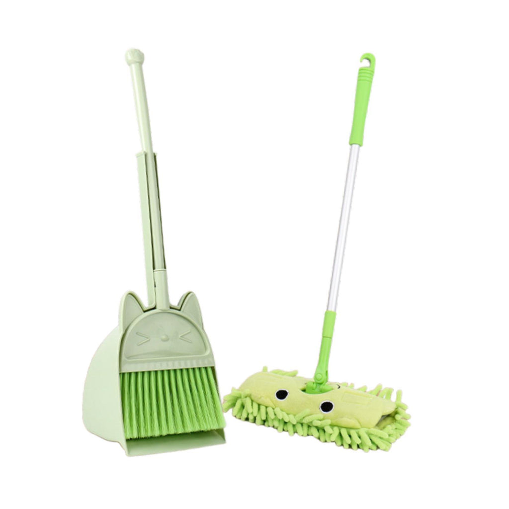Mini Broom with Dustpan Mop for Kids Pretend Play for Age 3-6 Birthday Gifts green
