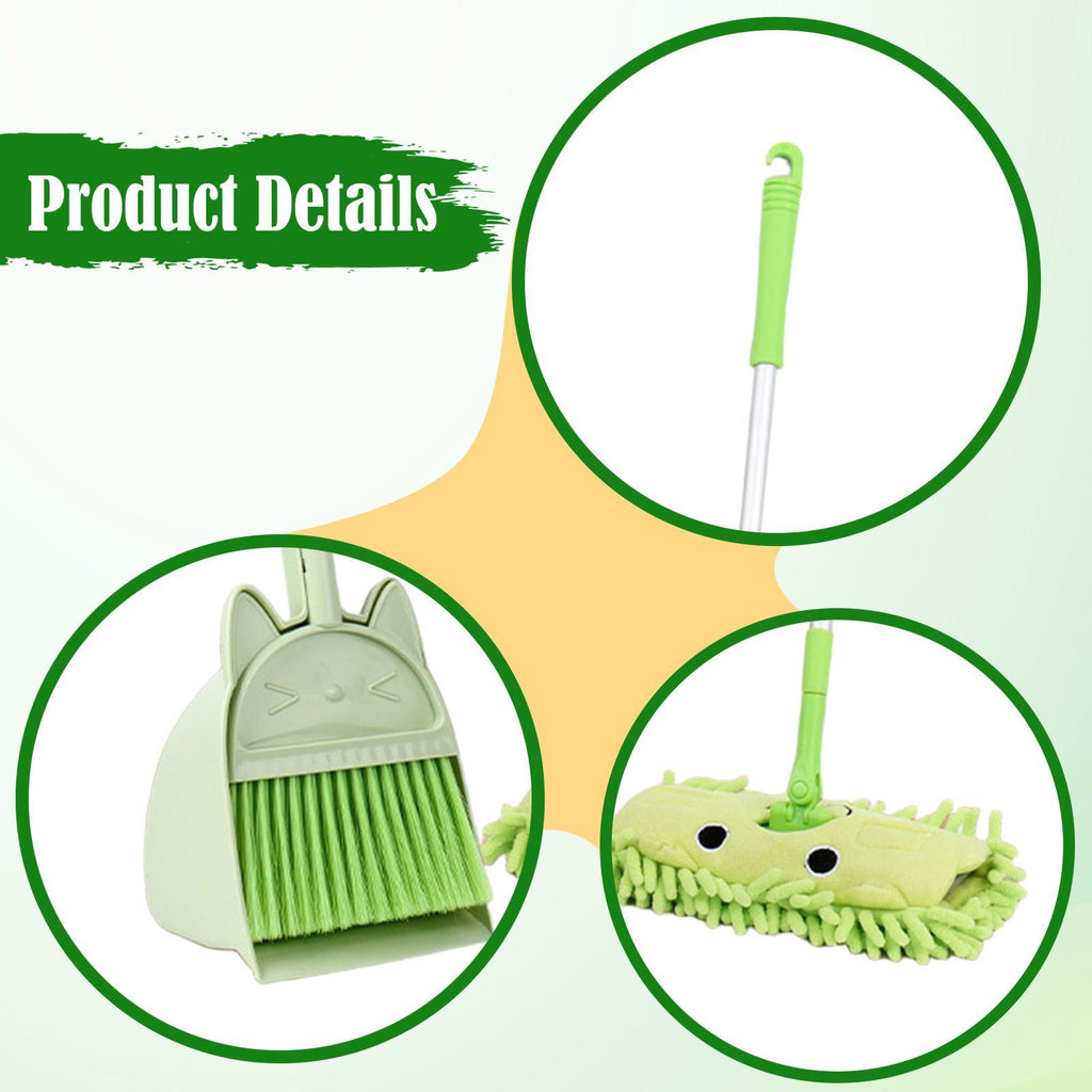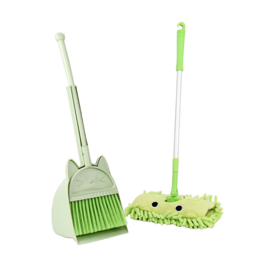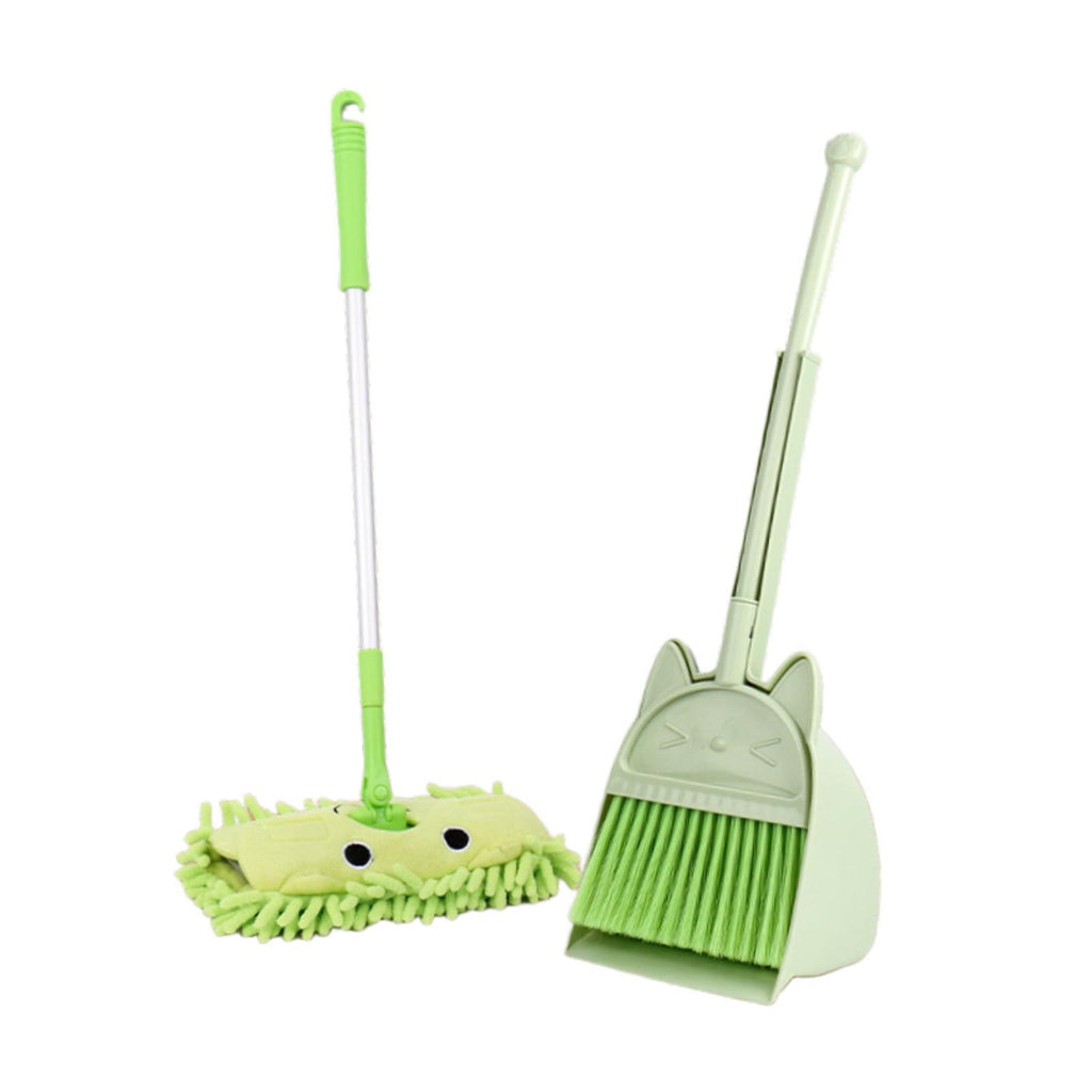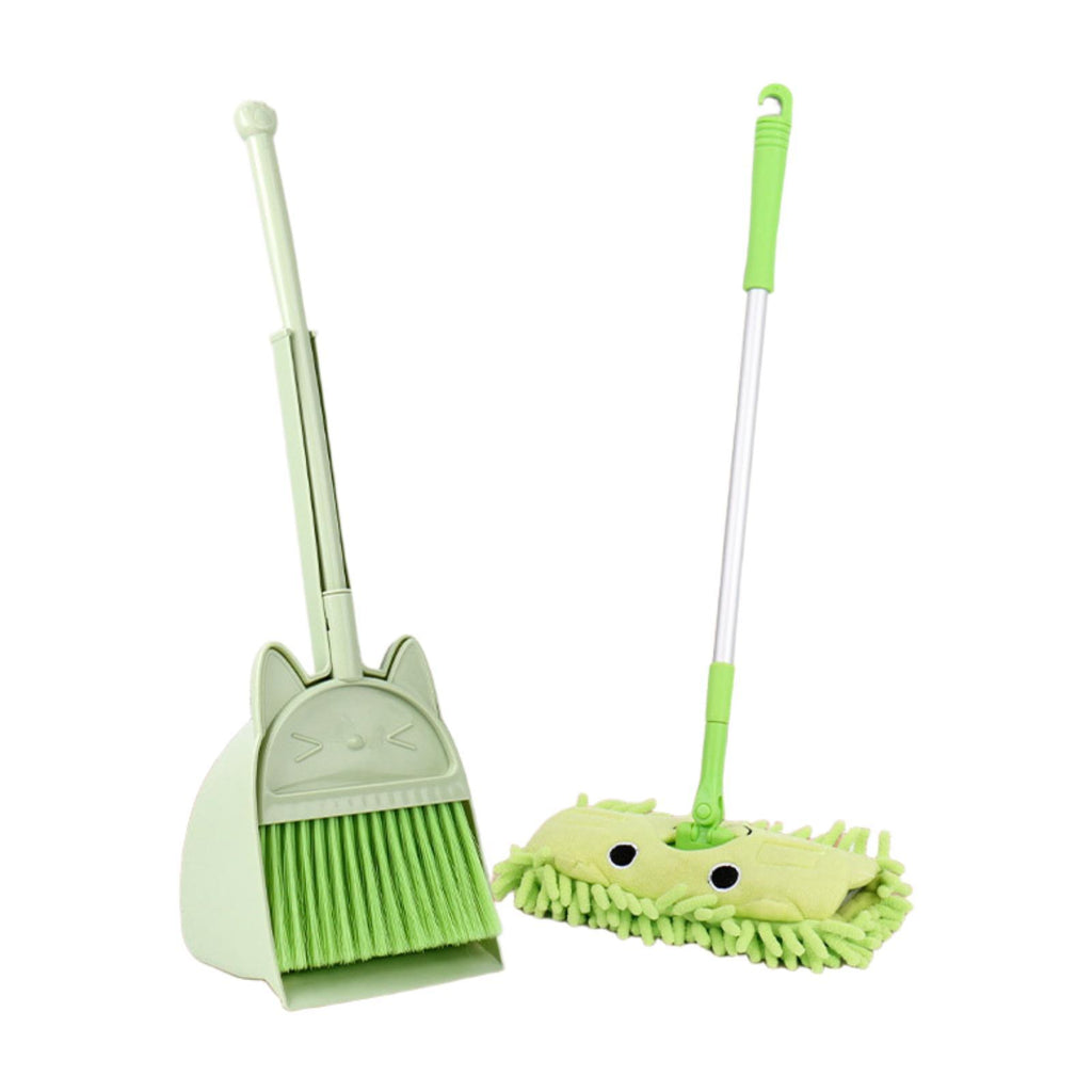 Mini Broom with Dustpan Mop for Kids Pretend Play for Age 3-6 Birthday Gifts green