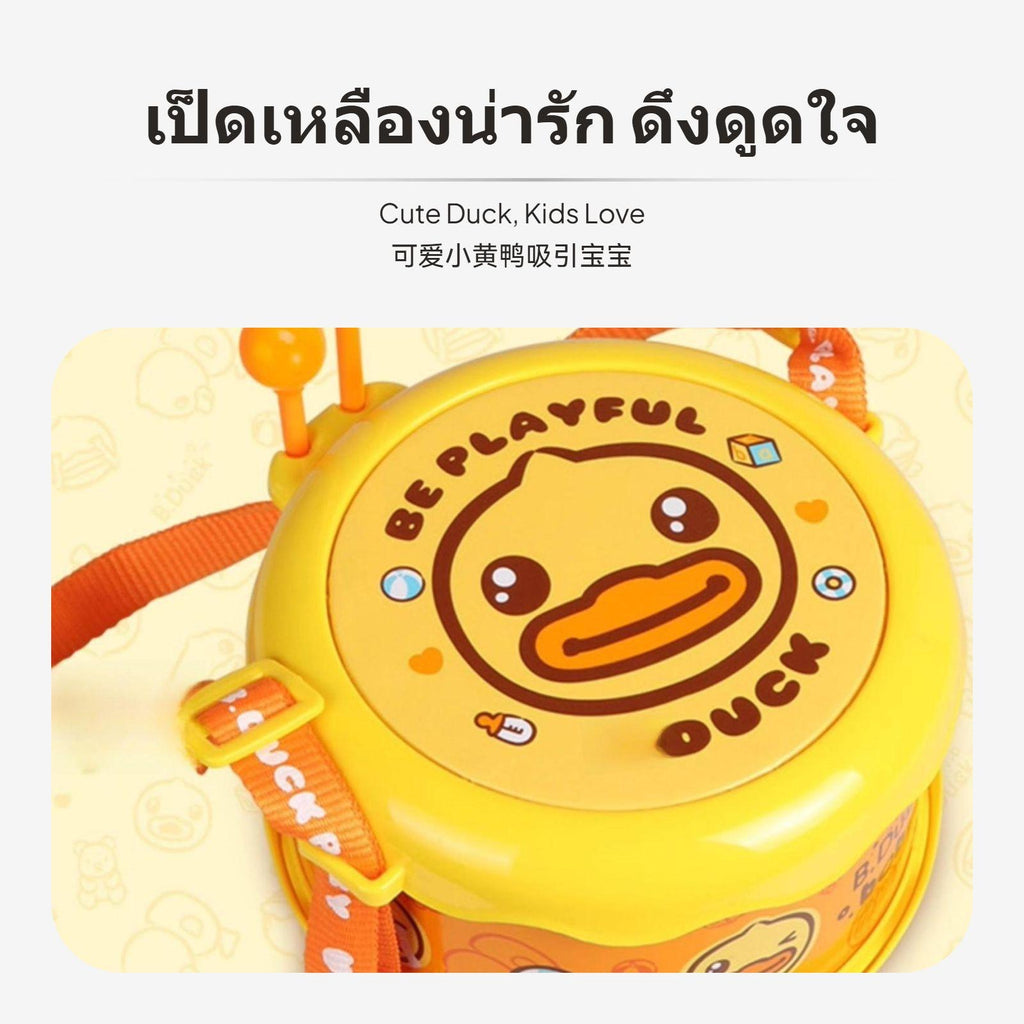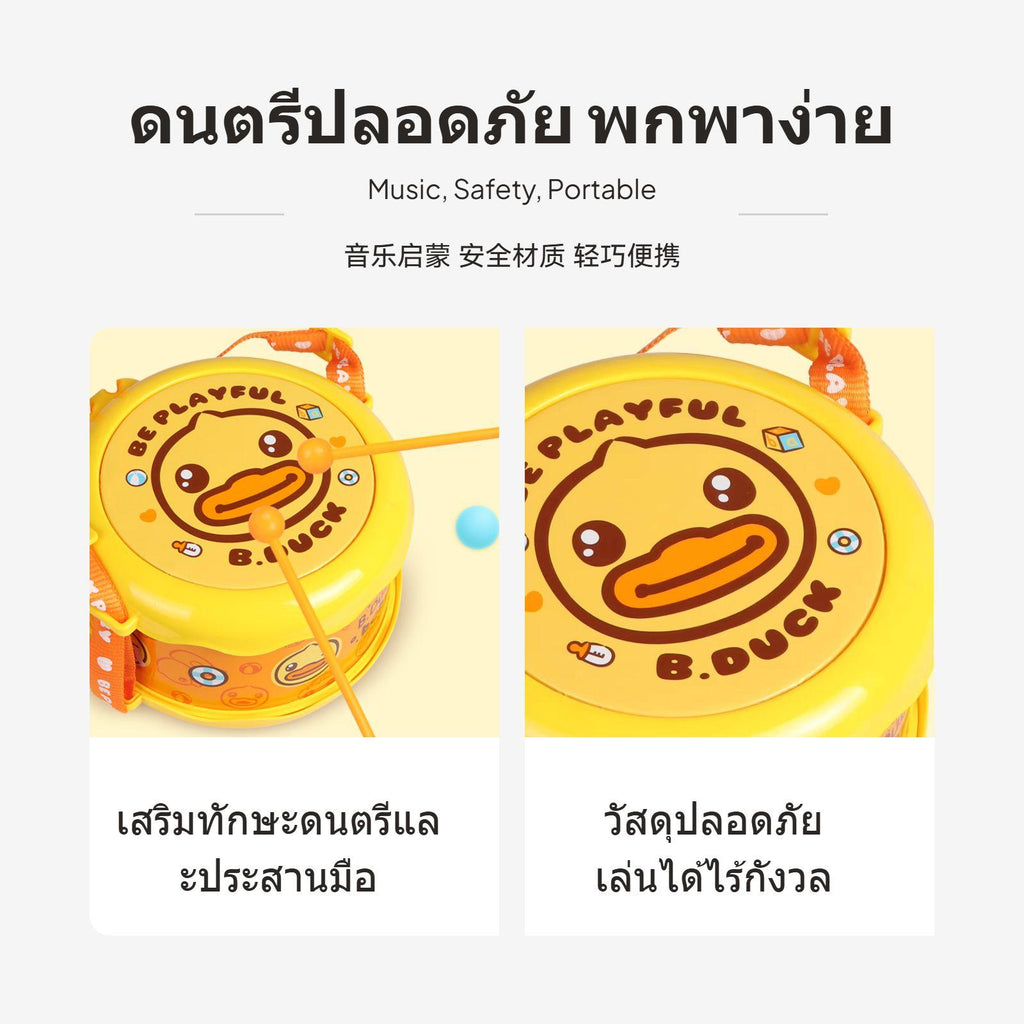【Fun Musical Learning】 This mini hand drum for children features a cute yellow goose design and double-sided drum surface, making it an engaging musical toy for early education and tactile development.【Safe sturdy Material】 Crafted from polished, rounded plastic with no rounded edges, this drum ensures secure play for children ages 3 and up while offering enduring durability.【Portable & Convenient】 Includes an adjustable strap for easy carrying and a built-in compartment for percussion mallet storage, allowing kids to enjoy music anywhere without losing accessories.【Promotes Coordination & Creativity】 Encourages hand-vision coordination, rhythm practice, and imaginative play, helping children develop essential skills through interactive drumming.【perfect Gift Choice】 Perfect for birthdays, holidays, or school activities, this musical toy inspires a love for music and supports cognitive growth in young children.Specification: