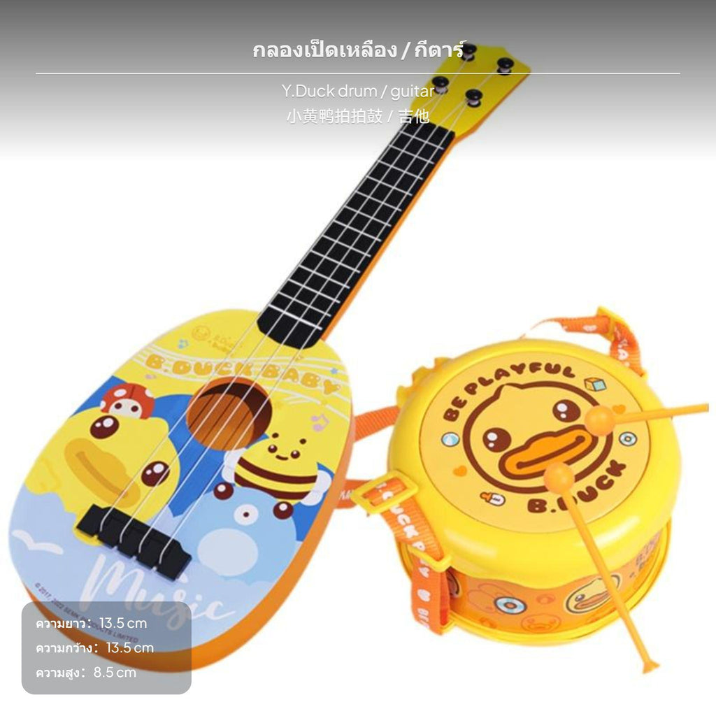 Mini Hand Drum for children, Yellow goose, Musical Toy, Double-Sided Drum+Guitar