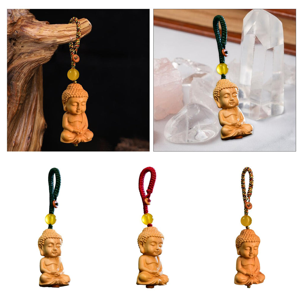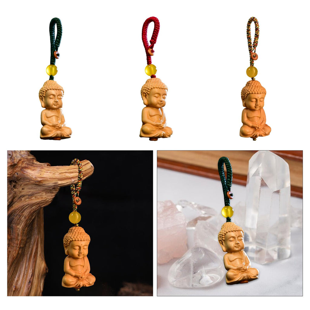 Maxbell Mini Wood Buddha Key Chain Lucky Pendant Accessory Feng Shui Sculpture Craft