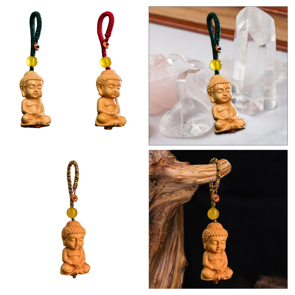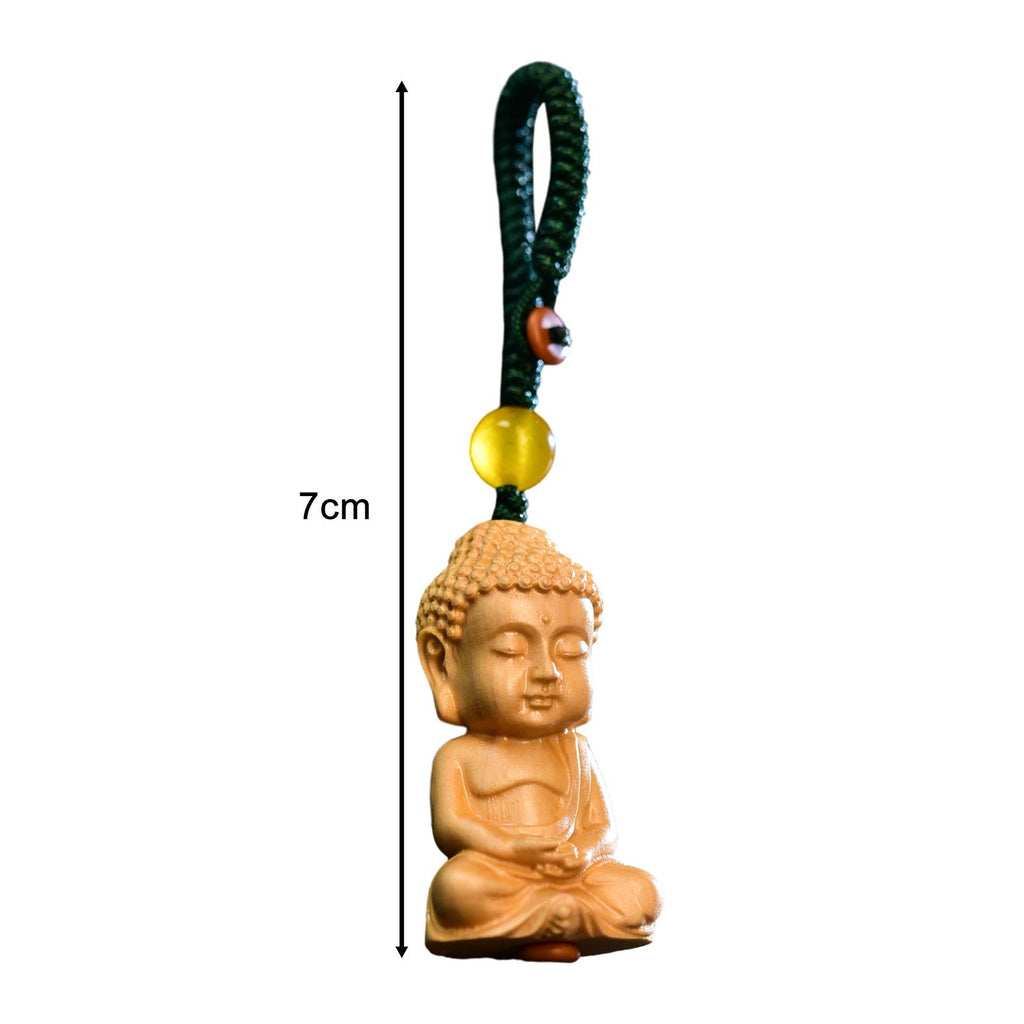 【Wood Material】The buddha statue keychain is made of quality wood material, decorated with braided cord,sturdy and durable
