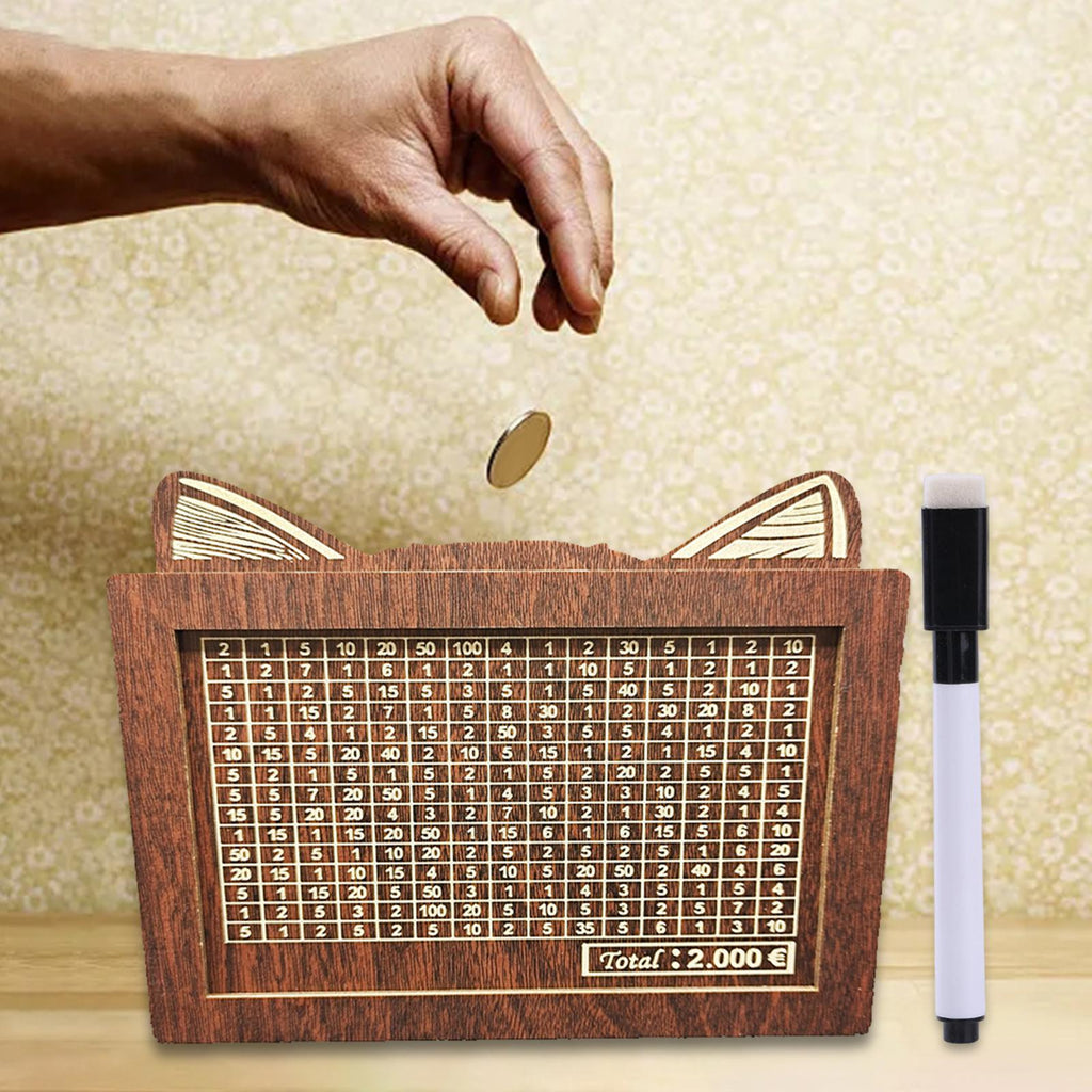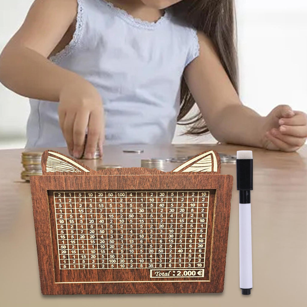 Maxbell Money Box with Counter Retro Wooden Piggy Bank for Teen Children Party Favor Euro 2000
