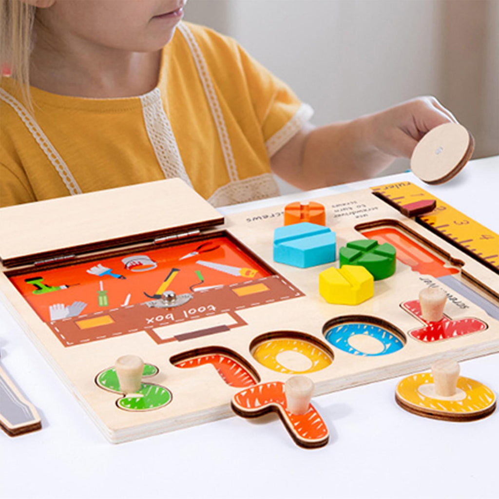 【Design】: Wooden Busy Board has a novel design that can help children identify commonly used tools, satisfy children's curiosity about tools, and promote the development of sensory exploration.