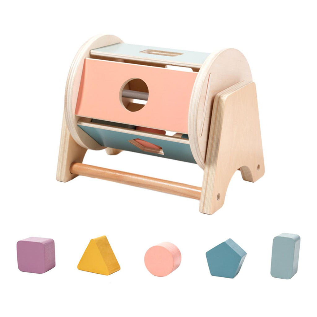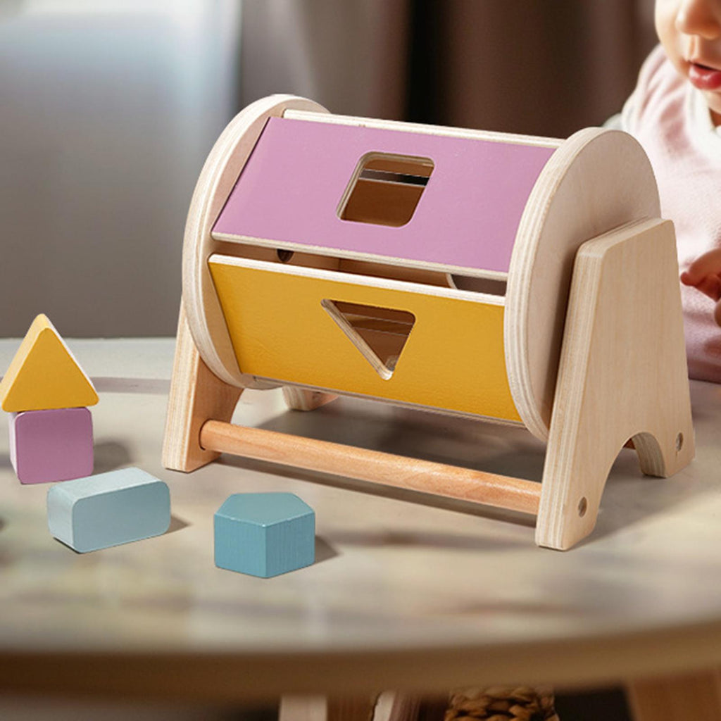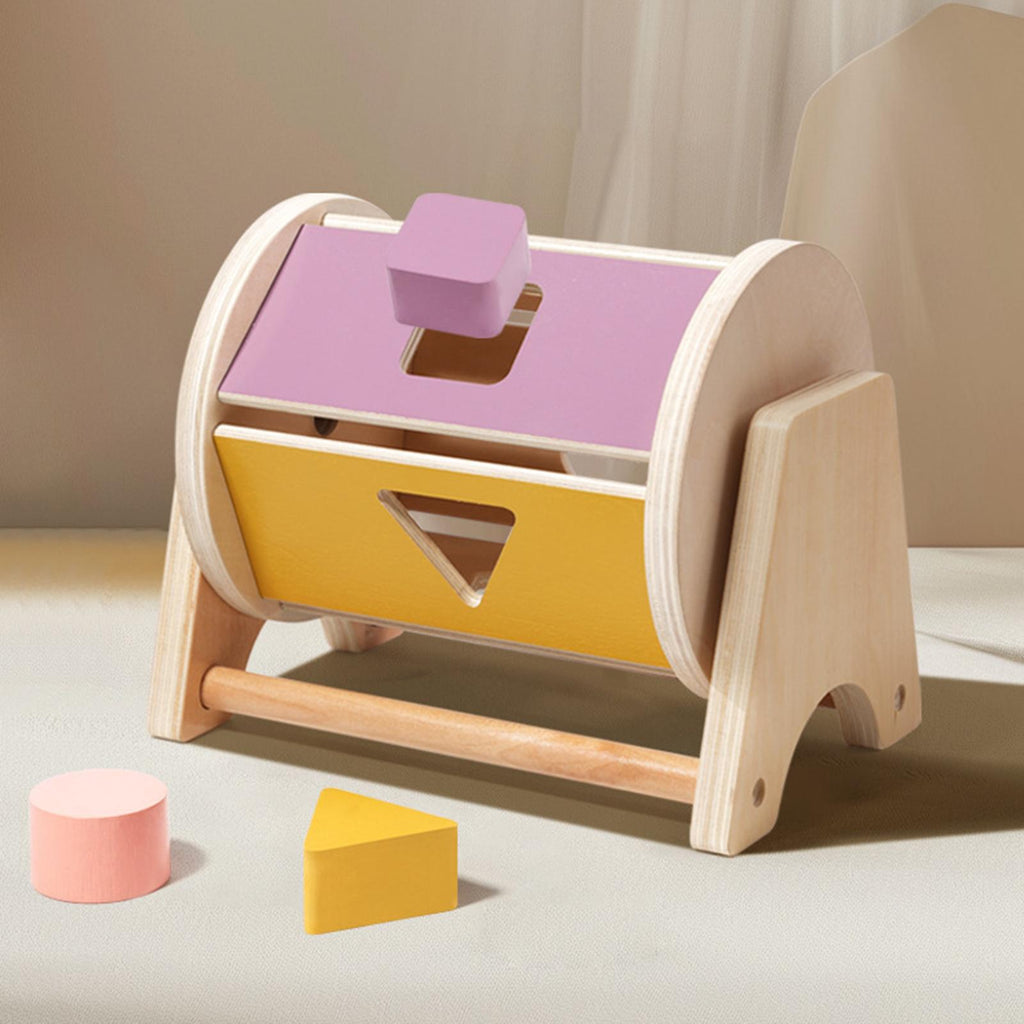 【Montessori Rotating Drum】:The wooden drum toys has a variety of colors and shapes, helps them learn and identify different colors. It contains a small bell that makes a sound when rolling the drum.