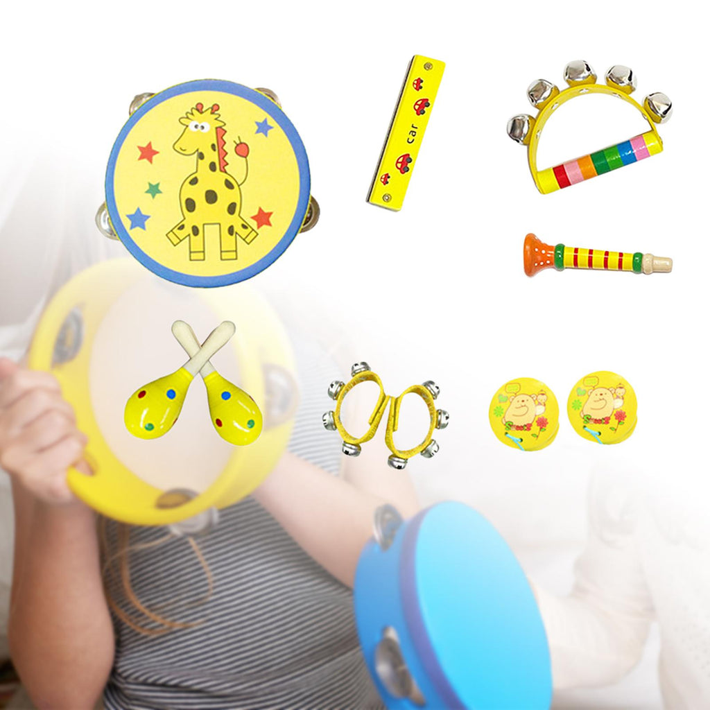 【Includes】: The colorful children musical instrument set includes hand bell, tambourine, castanets, rainbow horn, maracas, and more. Bright color, more musical instruments, more fun.