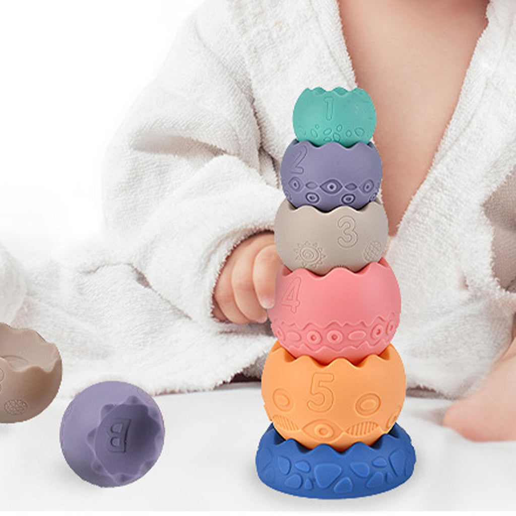 【High Quality Material】These stacking blocks are made of silicone gel material,suitable for babies to play with.