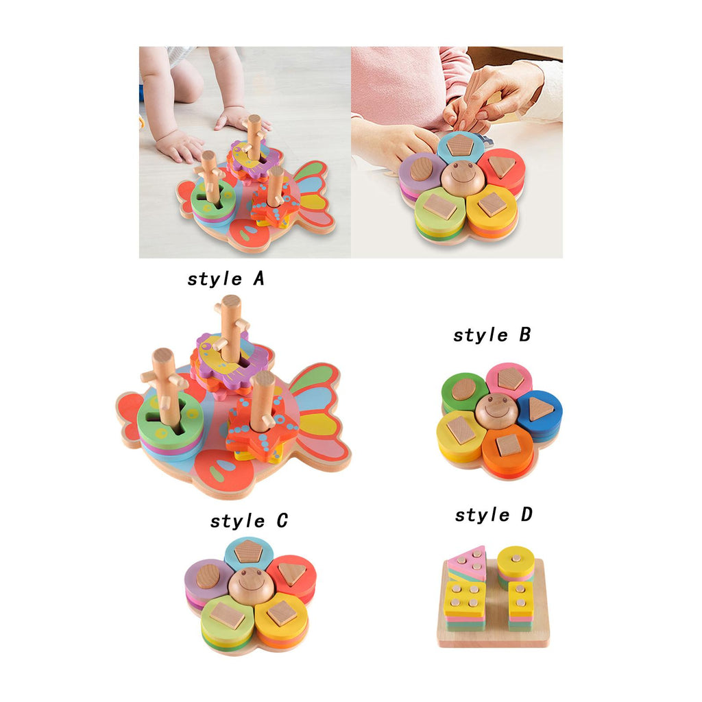 【Fine Motor Skills】:Wood shape stacking toy, kid place the shapes on the pegs, each shape fits a specific post, improve children's fine motor skills.