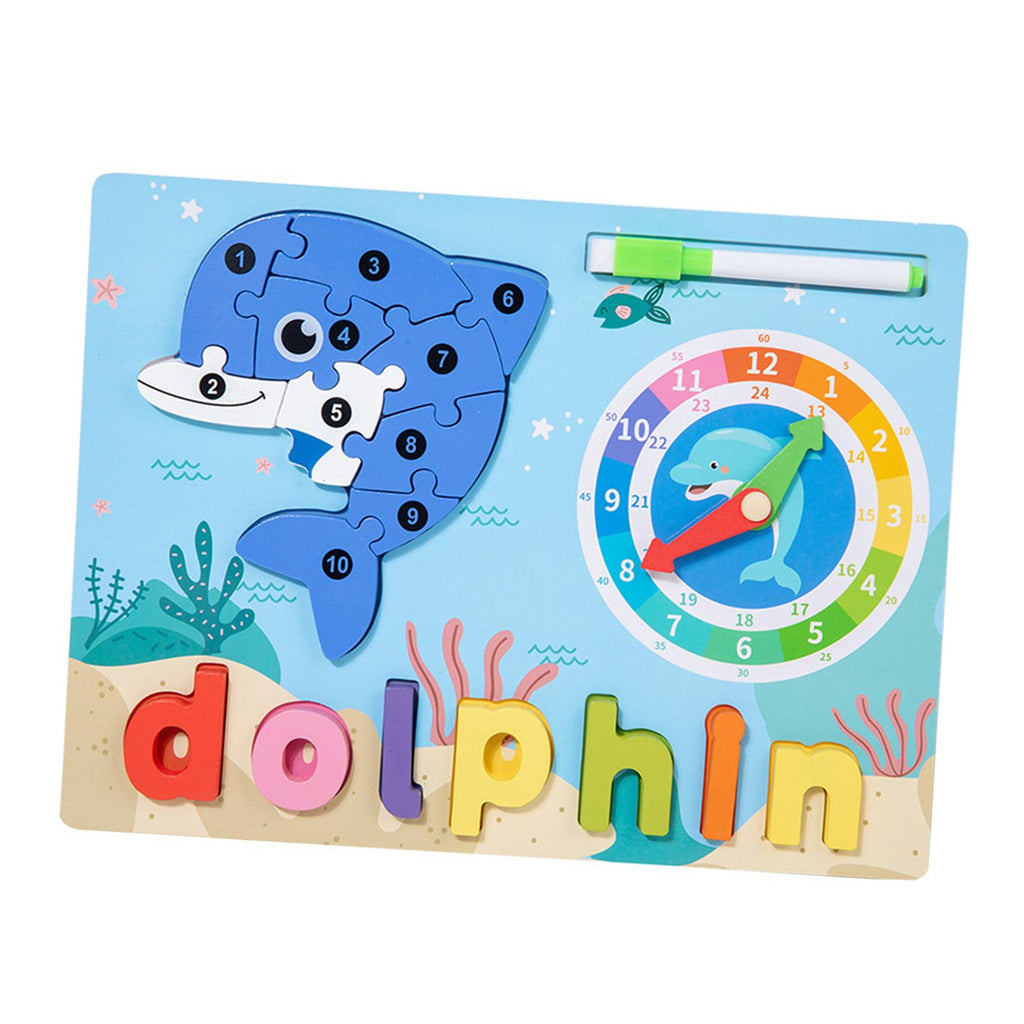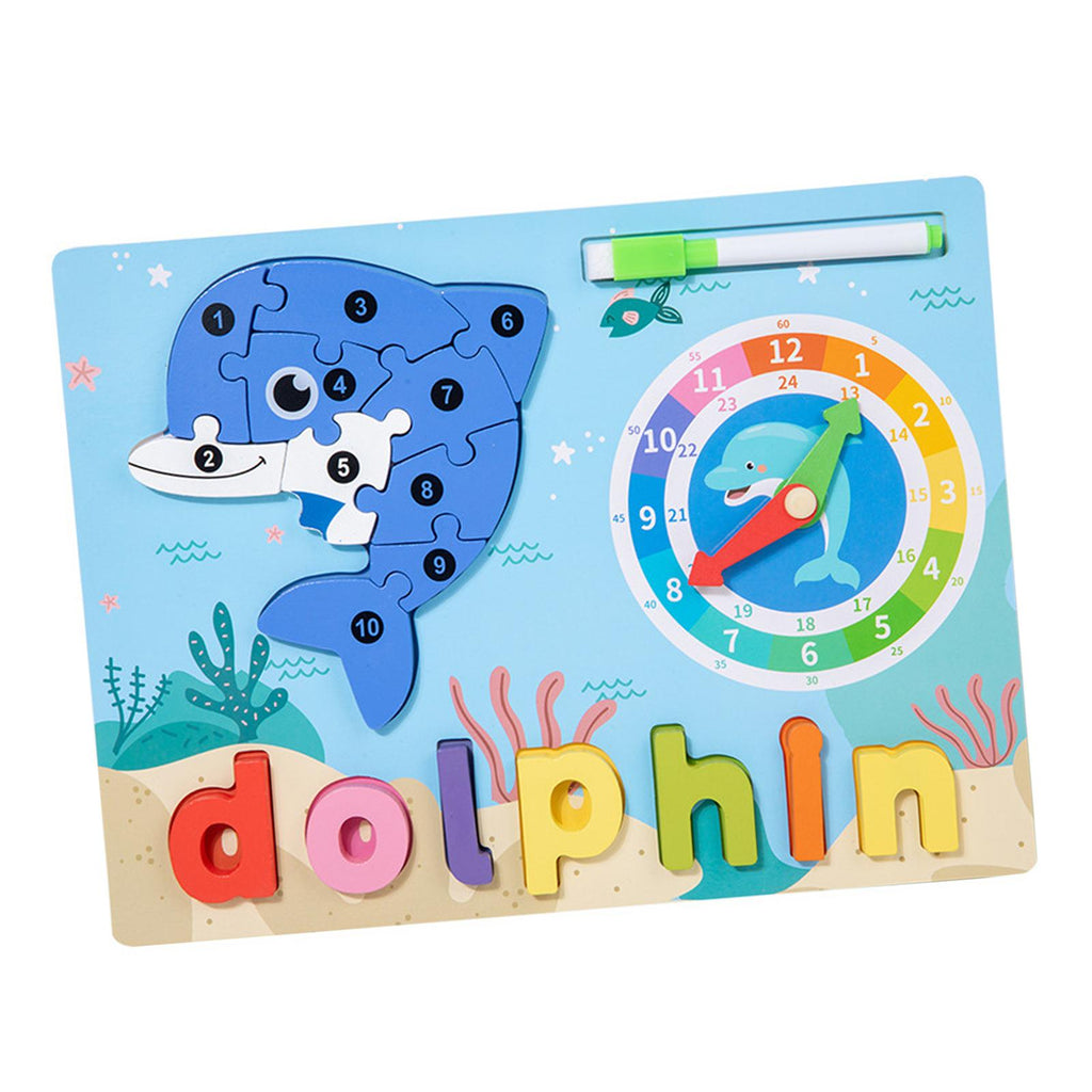 Maxbell Montessori Toy Preschool Alphabet Animal Puzzle for Boys Girls Children Gift dolphin
