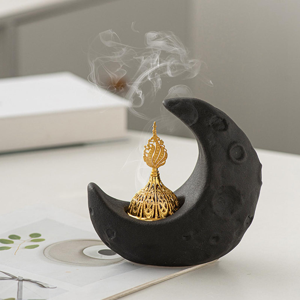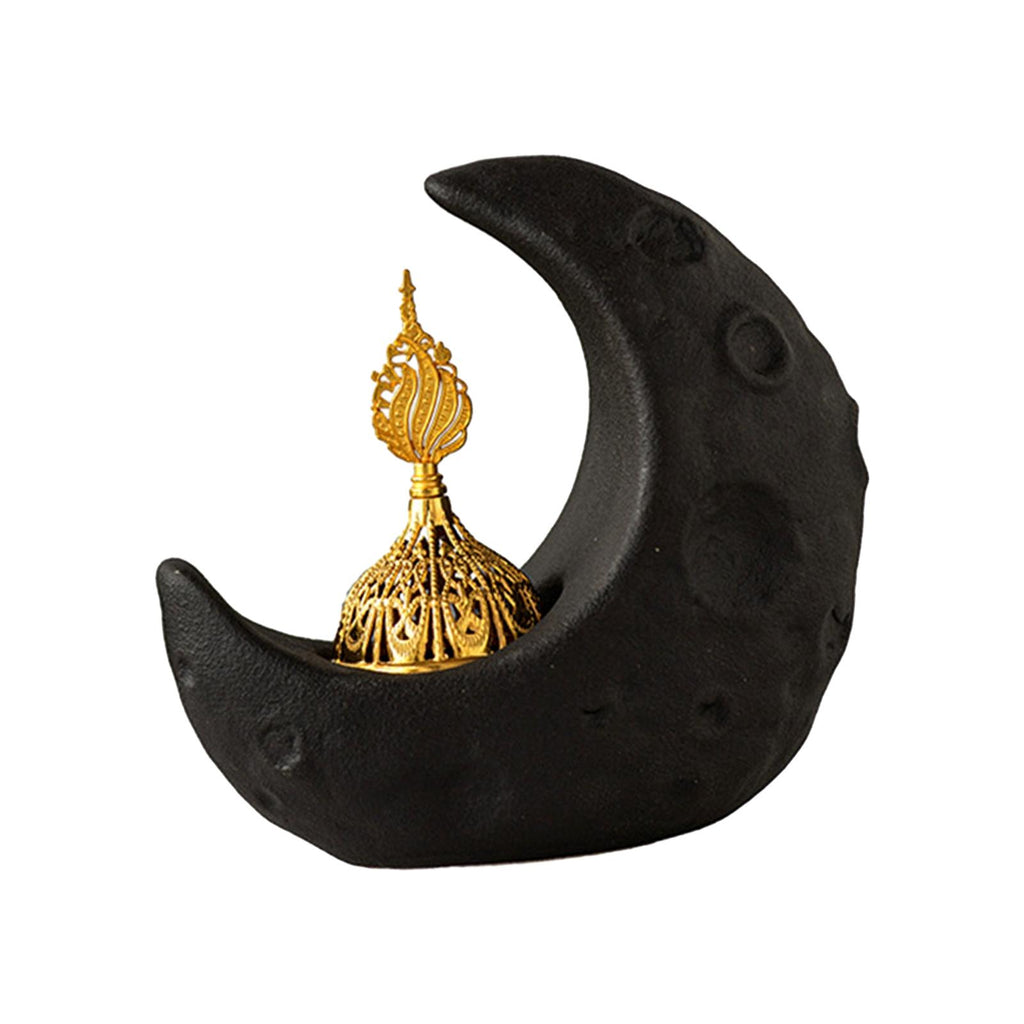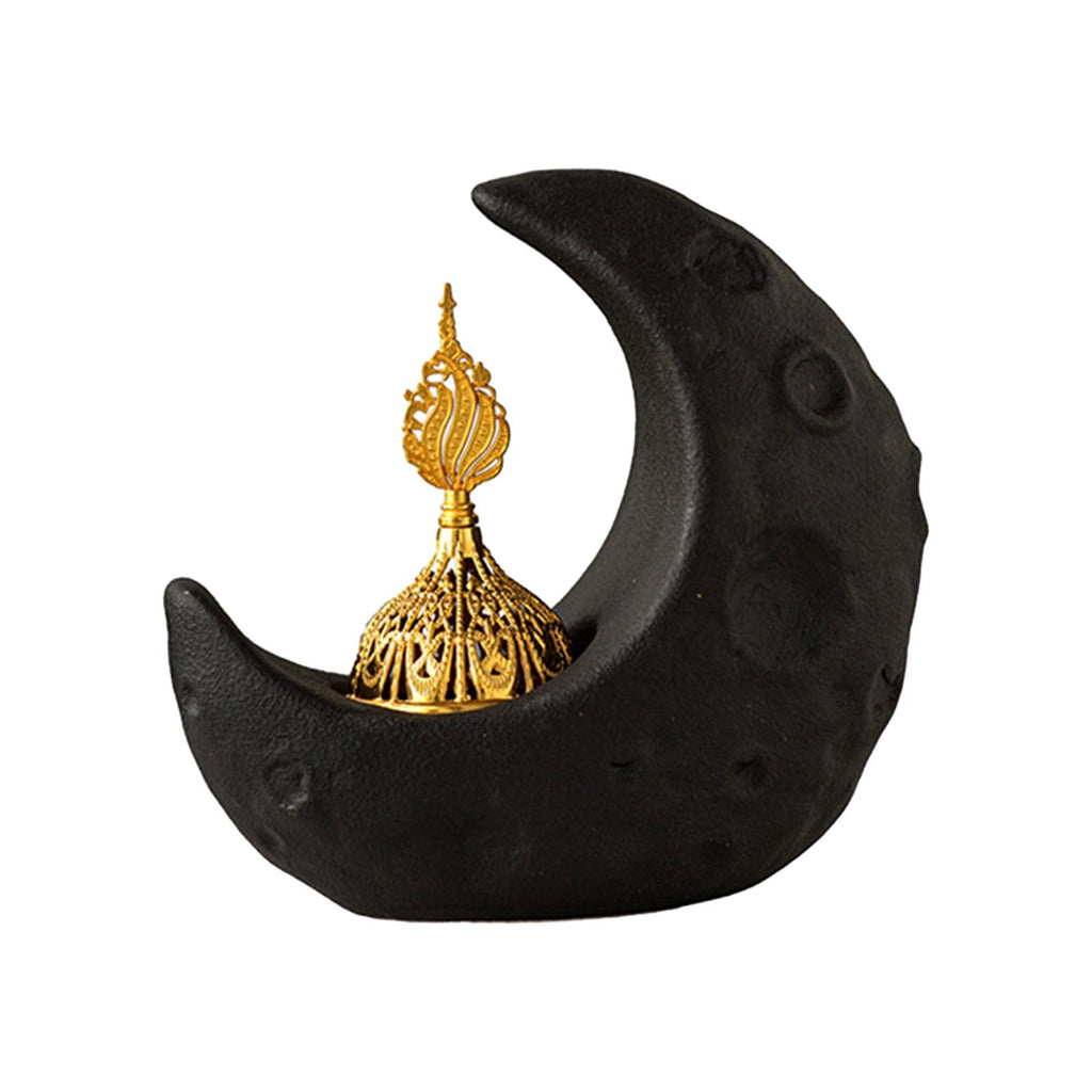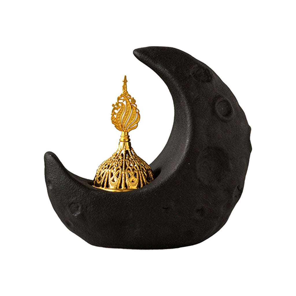 【Material】: This Ramadan Crescent Moon Incense Burner is made from premium quality ceramic material. It features exquisite details that give it a solemn and elegant appearance, providing you with unique decorative effects.