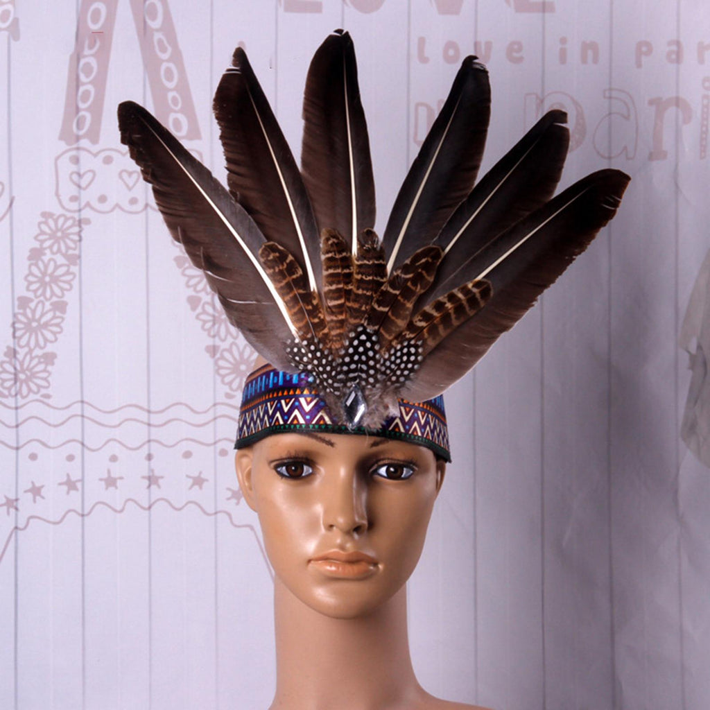 Maxbell Native American Indian Headwear Feather Headdress for Mardi Gras Fancy Dress