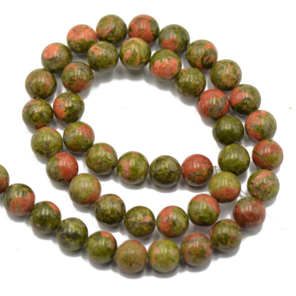 Maxbell Natural Unakite Jasper Round Gemstone Loose Beads Strand 15 Inch/8mm