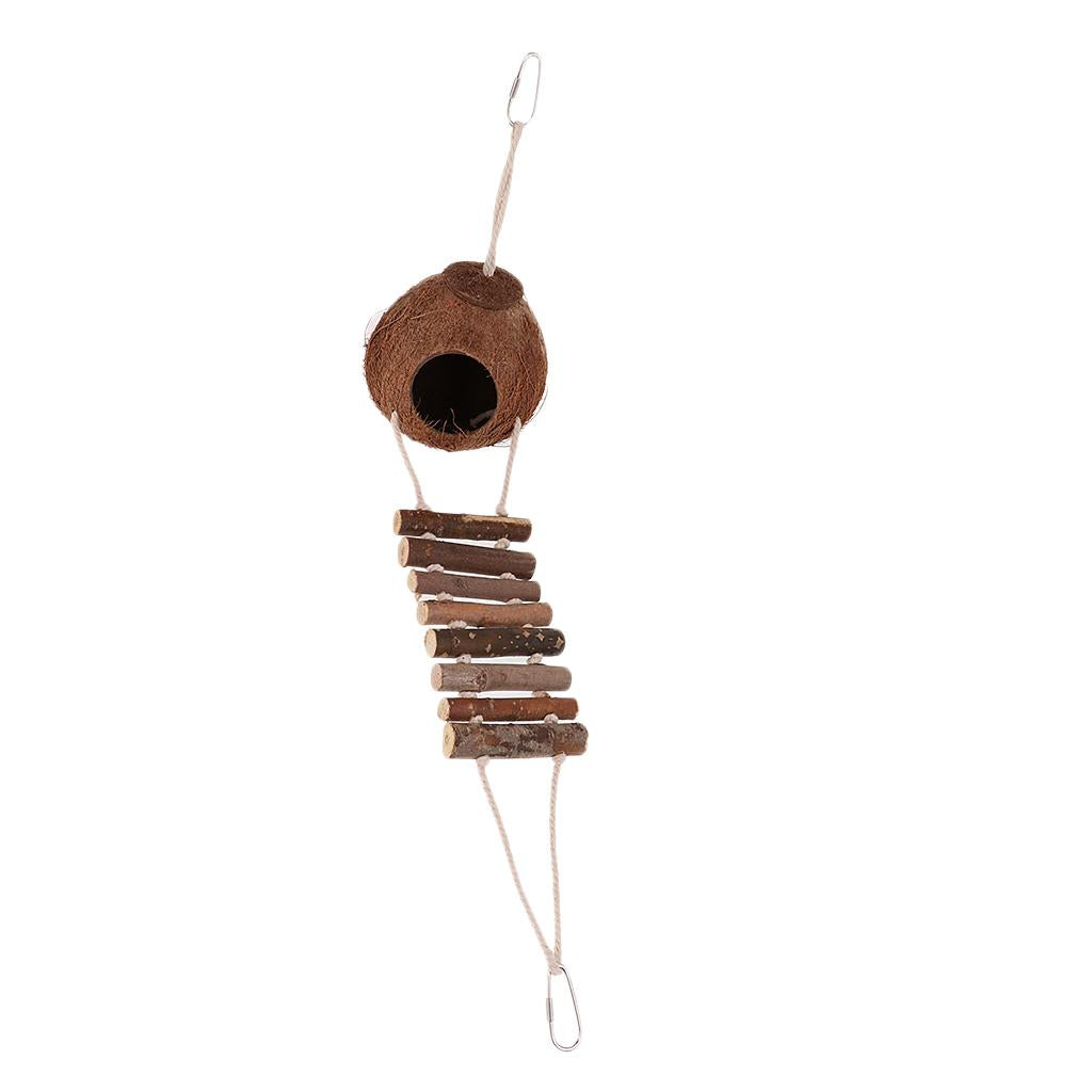 Maxbell Naturals Coco Hideaway with Ladder Bird Toy for Pet Parrot Feeder Toy