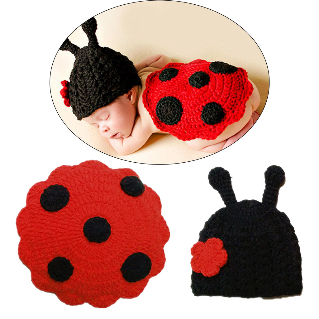 Maxbell Newborn Babies Ladybug Suit Costume Crochet Outfits Photography Props