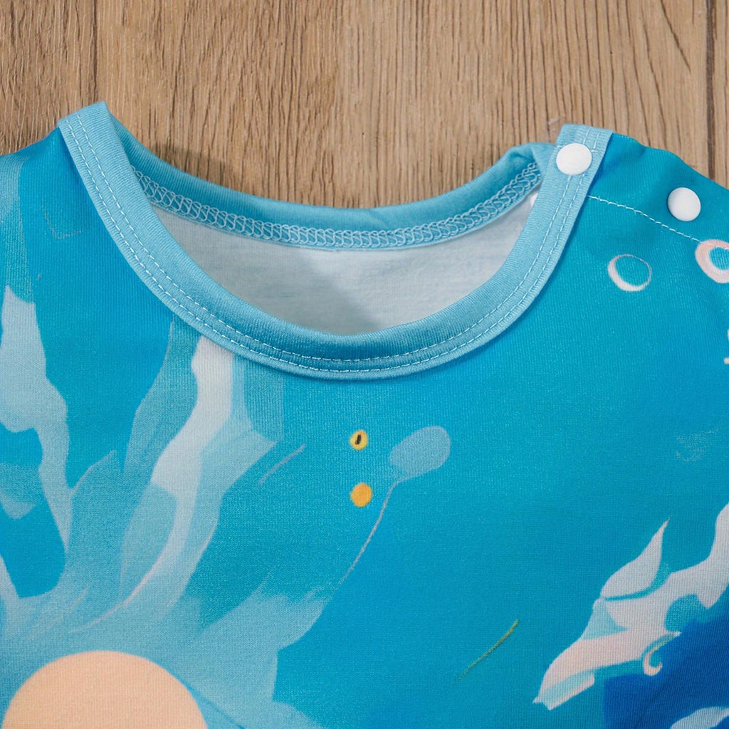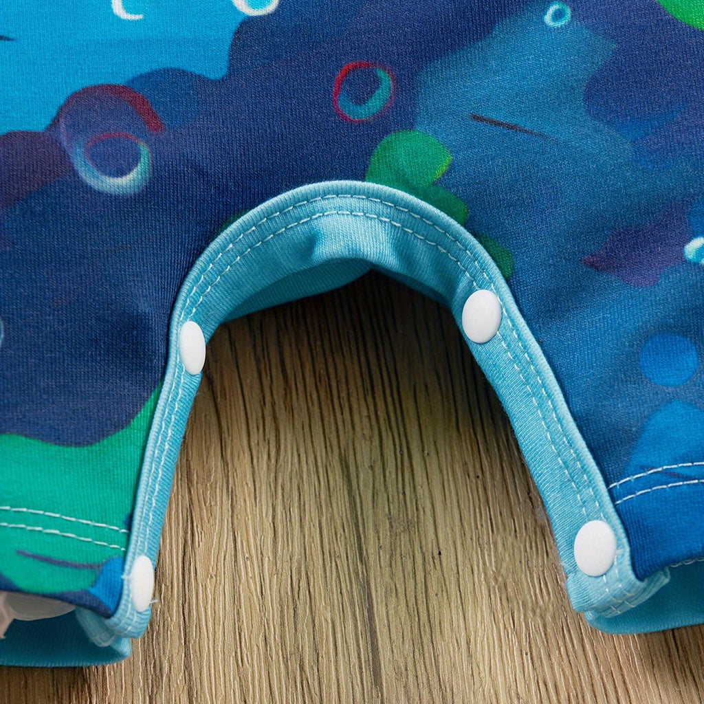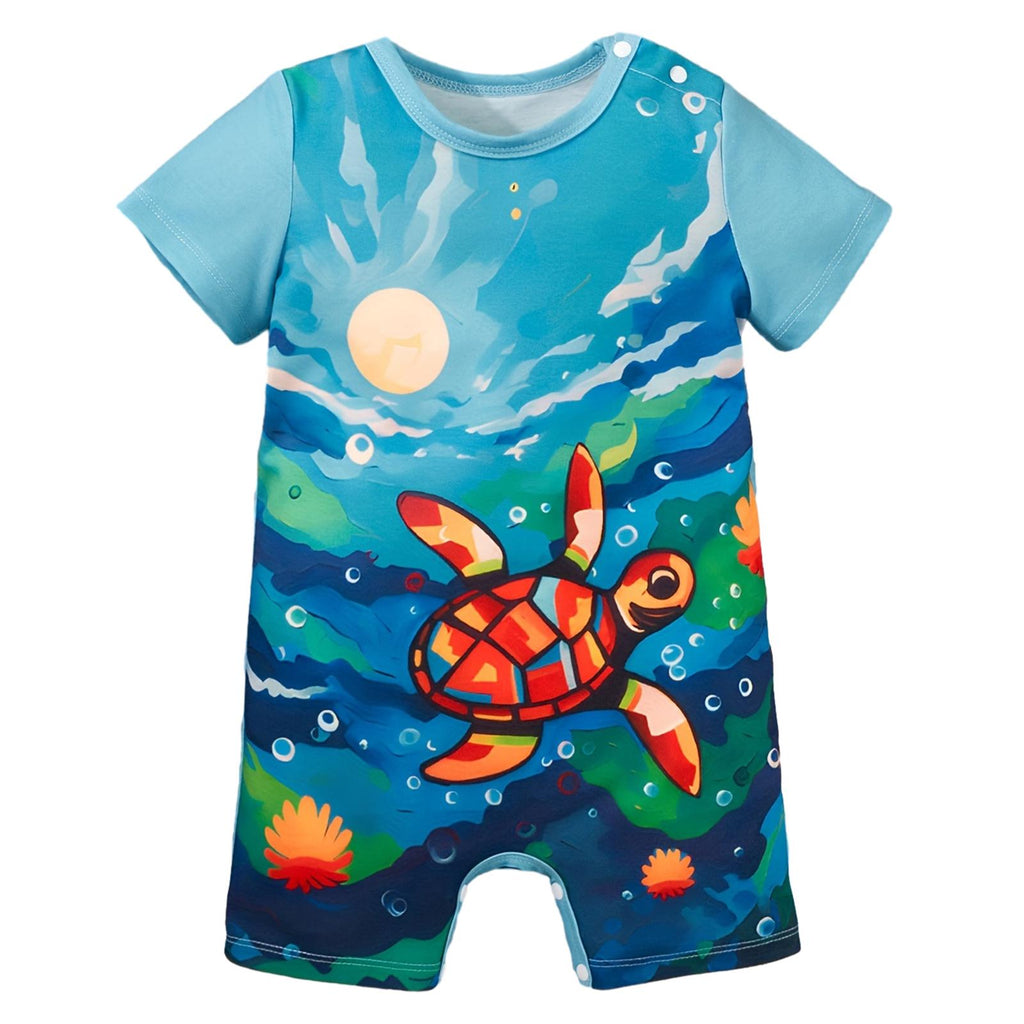 【Fashion Jumpsuit】Cartoon marine sea turtle printed baby jumpsuit outfits clothes featuring button and snaps for easy diaper changes and easy taking on and off, very practical design for your little baby.