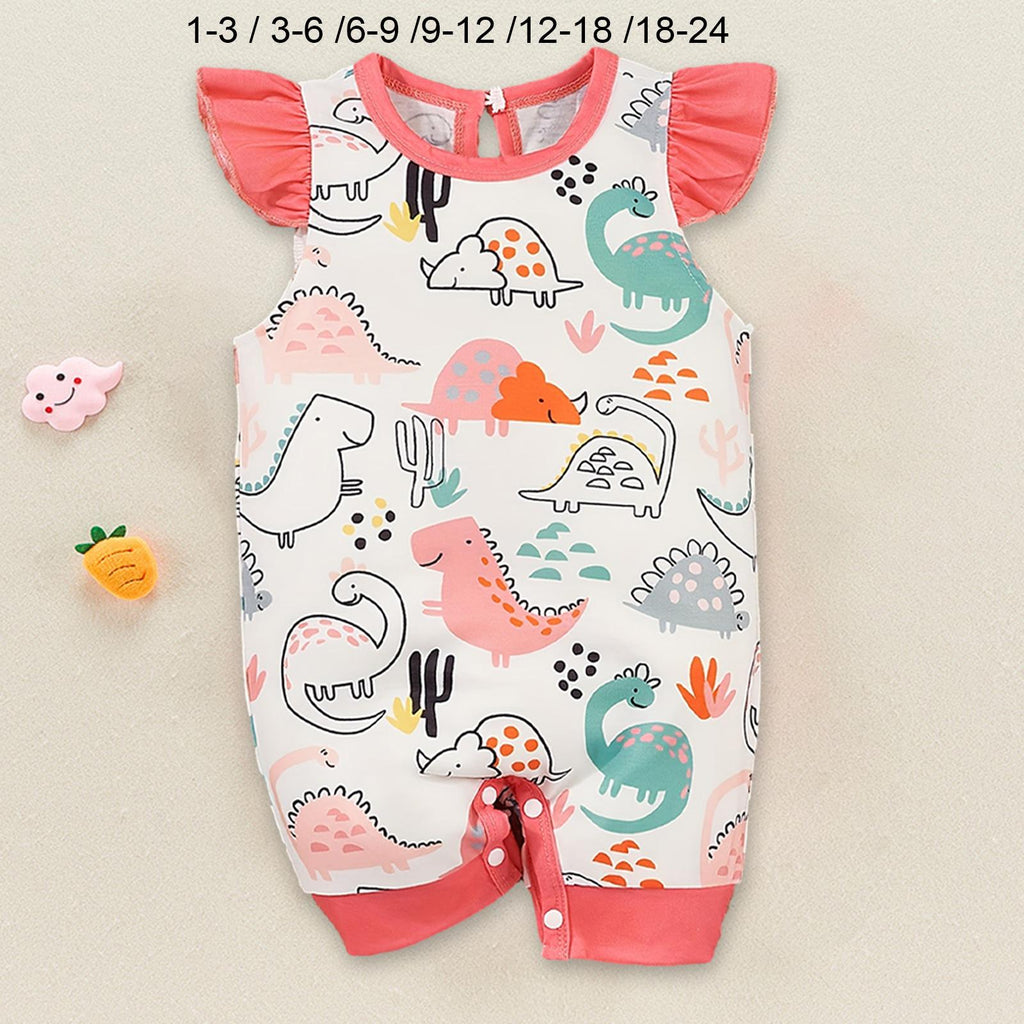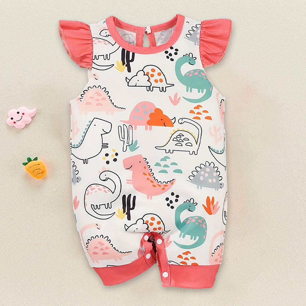 【FEATURE】Stylish infant baby girl summer romper jumpsuit, round neck, fly sleeve romper shorts outfit, basic , snap button on crotch, summer jumpsuit for baby girls, infant baby girl shorts piece outfit, loose fit summer for baby girls, snug and basic piece romper for baby girls.